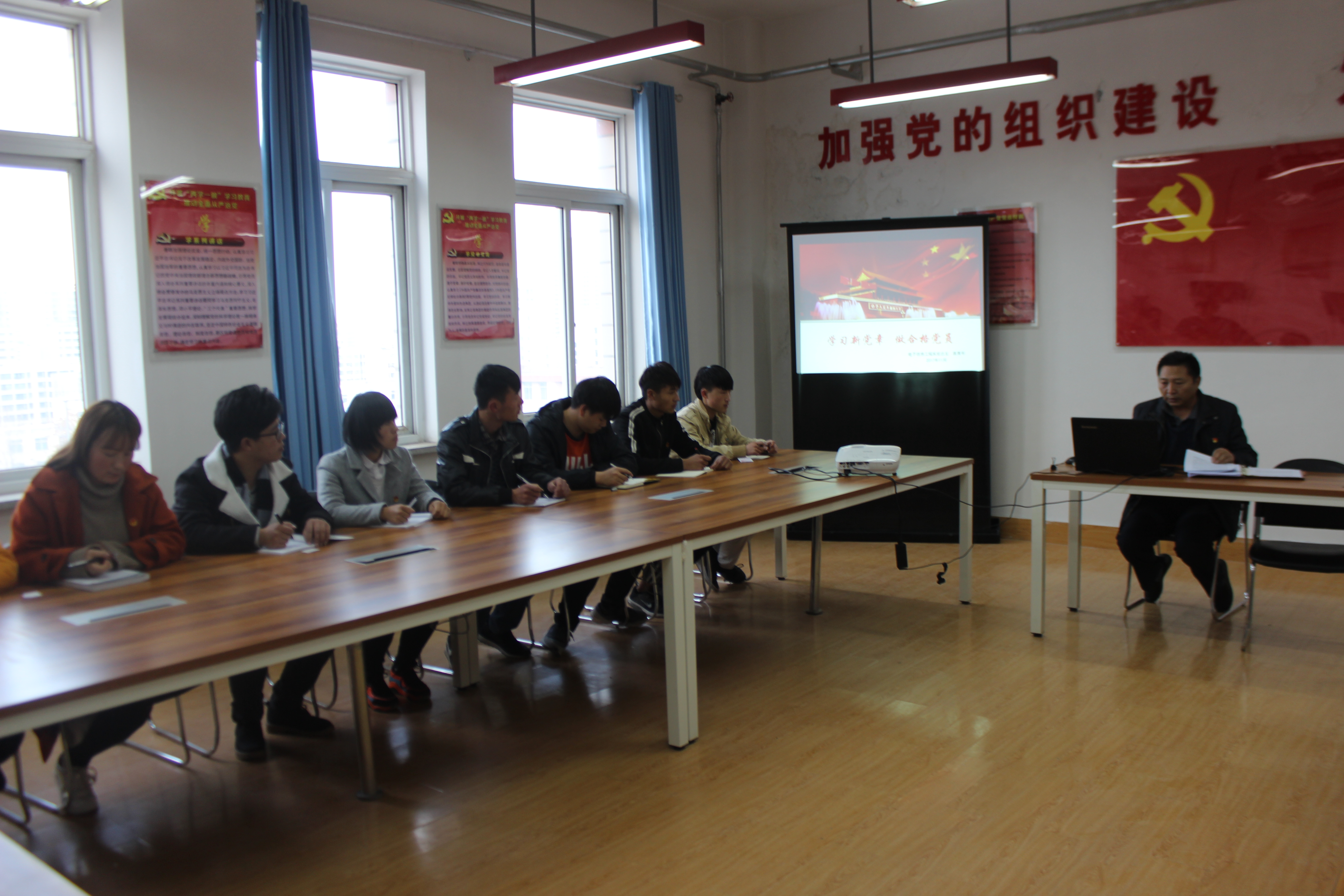 為深入學習黨的十九大會議精神,電子信息工程系黨總支于2017年11月29日下午在尚德樓五樓黨員活動室開展了書記講黨課活動。黨課由袁青年同志主講,題目為《學習黨章 踐行黨章》,全體黨員和入黨積極分子參加了黨課學習。