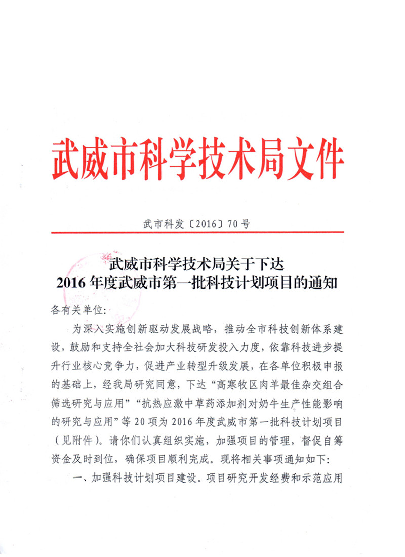 科研項(xiàng)目---2016年度武威市第一批科技計(jì)劃項(xiàng)目