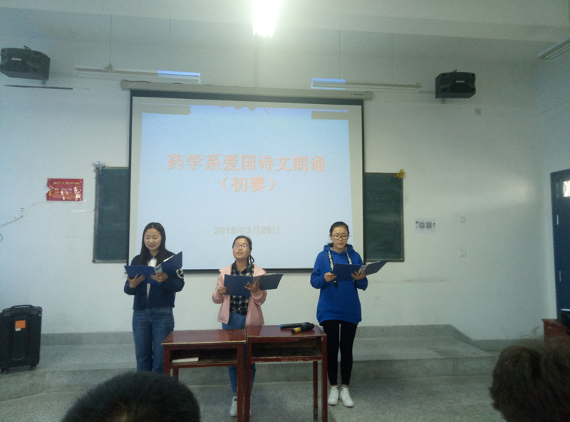 為深入學(xué)習(xí)貫徹習(xí)近平新時代中國特色社會主義思想和黨的十九大精神,鼓勵當(dāng)代大學(xué)生通過朗誦愛國詩文,感受中華經(jīng)典文化,塑造民族精神,展現(xiàn)新時期大學(xué)生精神風(fēng)貌,藥學(xué)系團(tuán)總支在系黨總支的安排和學(xué)院團(tuán)委的指導(dǎo)下,于3月26日在明遠(yuǎn)樓524教室舉辦了“我的中國夢”經(jīng)典愛國詩文朗誦比賽。藥學(xué)系16級、17級各班學(xué)生代表參加了此次朗誦比賽。