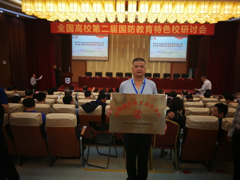 在會上,中國高等教育學會國防教育工作委員會組委會向?qū)W院頒發(fā)了“全國國防教育特色學?!迸啤?/p>