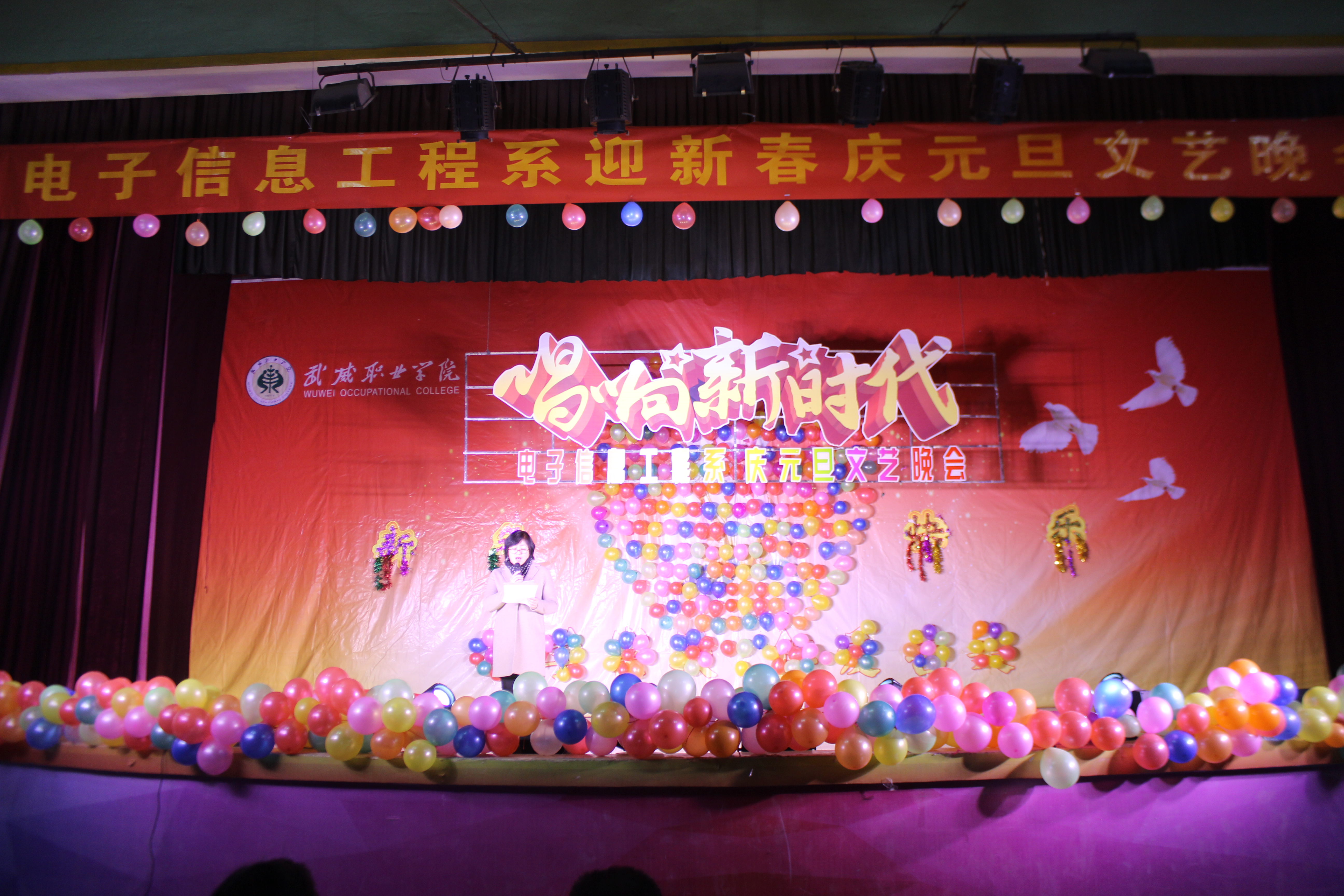 ? ? 12月28日晚,電子信息工程系全體師生齊聚學(xué)院大禮堂,舉辦了以“唱響新時(shí)代”為主題的慶元旦文藝晚會(huì)。學(xué)院黨委委員、副院長王永緒作為特邀嘉賓觀看了演出。