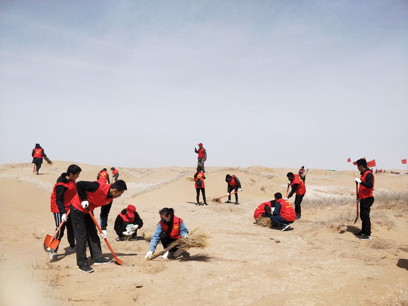 為傳播綠色發(fā)展理念,引導(dǎo)青年學(xué)生牢固樹立“綠水青山就是金山銀山”的理念,積極投身植樹造林、美化環(huán)境、治沙壓沙等生態(tài)文明建設(shè)的生動(dòng)實(shí)踐,4月14日,團(tuán)省委在民勤縣昌寧鎮(zhèn)四方墩志愿者生態(tài)林基地舉辦 “構(gòu)筑生態(tài)屏障·助力脫貧攻堅(jiān)”暨2018年“甘肅青年林”春季植樹活動(dòng)啟動(dòng)儀式。學(xué)院團(tuán)委組織53名志愿者參加活動(dòng)啟動(dòng)儀式和義務(wù)植樹壓沙活動(dòng)。