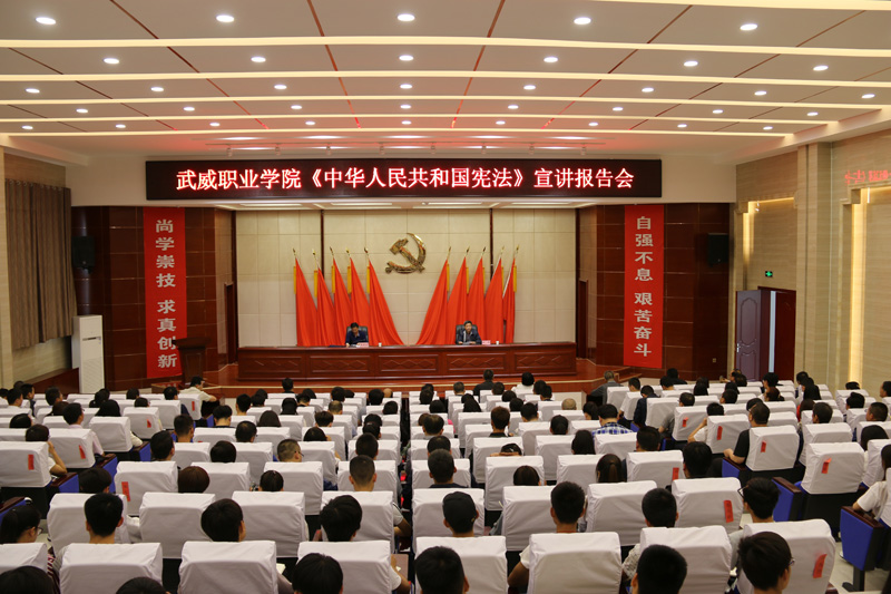 為深入推進(jìn)《中華人民共和國(guó)憲法》和《中華人民共和國(guó)憲法(修正案)》學(xué)習(xí)宣傳,提高廣大師生“學(xué)習(xí)憲法、尊崇憲法”的自覺(jué)性,6月7日,武威職業(yè)學(xué)院組織開(kāi)展專題宣講活動(dòng),邀請(qǐng)市檢察院檢委會(huì)專職委員郝建宏檢察官來(lái)學(xué)院作宣講報(bào)告。學(xué)院領(lǐng)導(dǎo)班子成員,副科級(jí)以上干部及師生代表共220余人參加了宣講報(bào)告會(huì)。報(bào)告會(huì)由黨委副書記趙明主持。