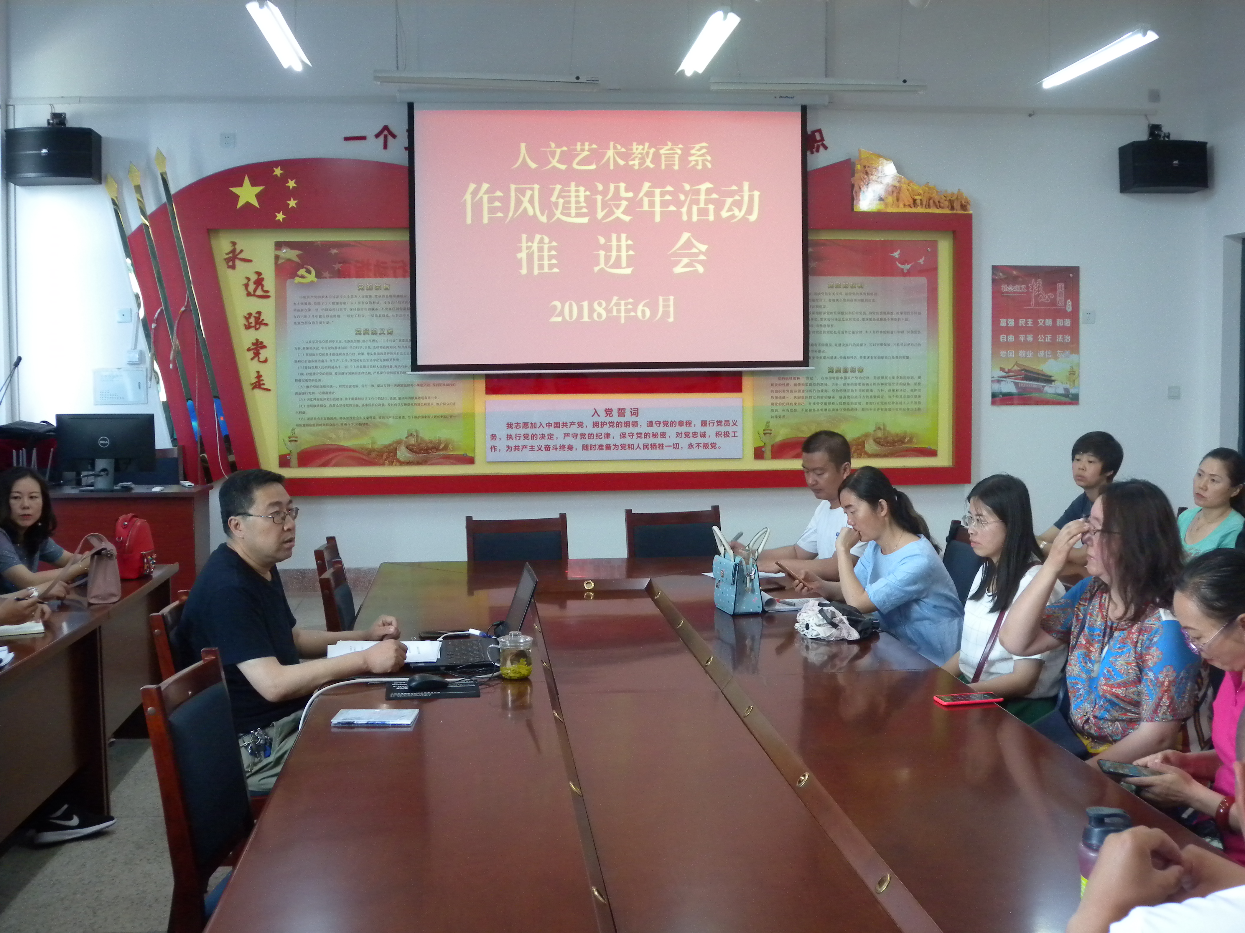 人文藝術(shù)教育系于6月13日召開了人文藝術(shù)教育系“作風(fēng)建設(shè)年”活動(dòng)推進(jìn)會(huì)。會(huì)議由系黨總支書記胡靜峰同志主持,全體教職工參加了會(huì)議。