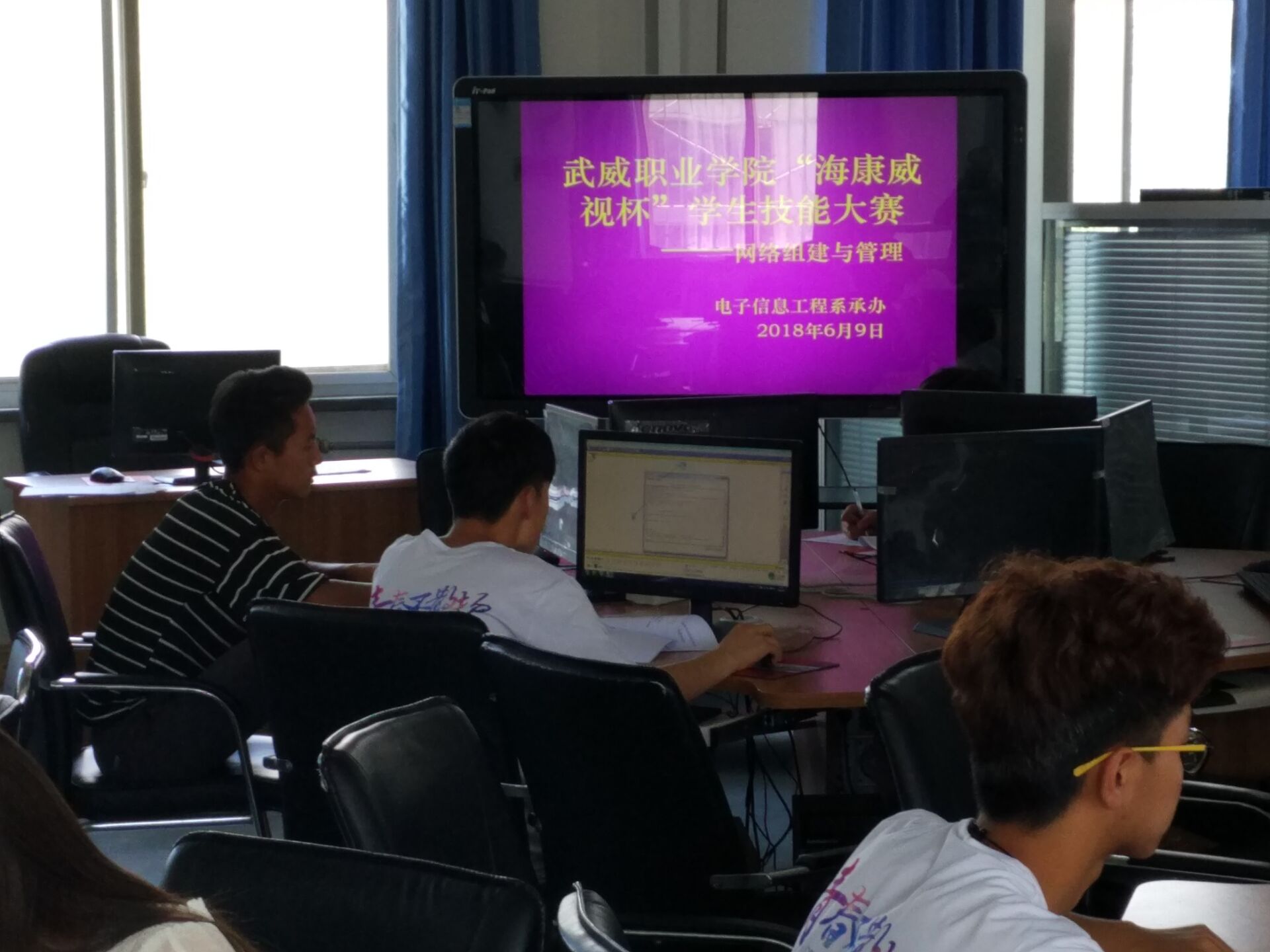 為了進一步提高學(xué)生實踐和應(yīng)用技能,有效提升學(xué)生在各類技能大賽中的競技能力,我系承辦的2018年“??低1?組網(wǎng)與網(wǎng)絡(luò)管理項目組技能大賽于6月9日上午如期舉行。