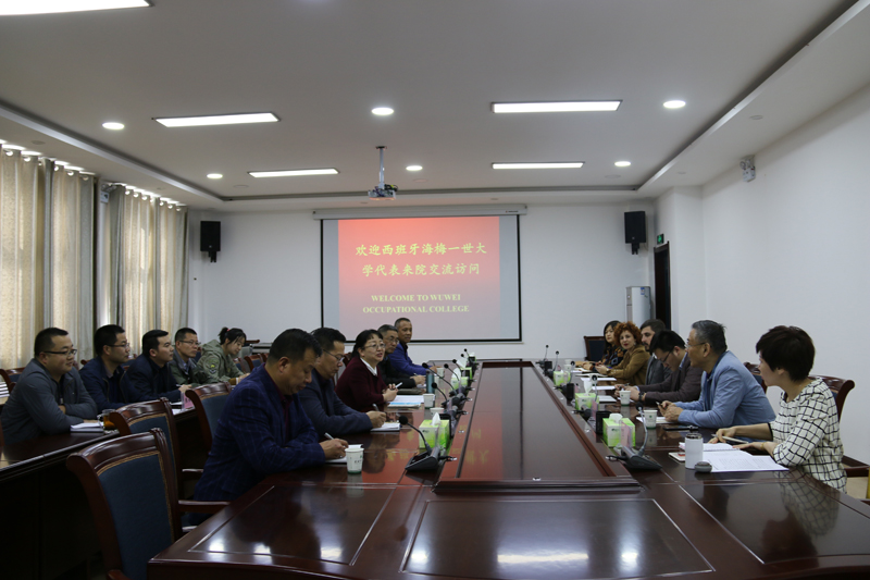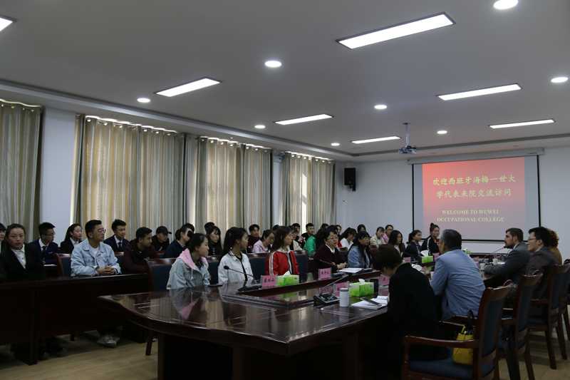 座談會(huì)上,田迎春代表全院師生對(duì)海梅一世大學(xué)到訪(fǎng)學(xué)院表示歡迎,對(duì)省國(guó)際交流與合作服務(wù)中心對(duì)學(xué)院的關(guān)心表示感謝,并向來(lái)訪(fǎng)客人簡(jiǎn)要介紹了武威文化歷史、學(xué)院建設(shè)發(fā)展情況、學(xué)院國(guó)際交流與合作開(kāi)展情況。來(lái)訪(fǎng)客人對(duì)學(xué)院近年來(lái)的巨大發(fā)展表示贊賞,對(duì)學(xué)院國(guó)際交流與合作開(kāi)展工作表示肯定。Ana女士通過(guò)PPT展示介紹了海梅一世大學(xué),希望雙方進(jìn)一步進(jìn)行合作。賓主雙方還就校際交流、語(yǔ)言培訓(xùn)、赴西班牙專(zhuān)升碩留學(xué)項(xiàng)目等共同關(guān)心的問(wèn)題進(jìn)行了深入交流。
