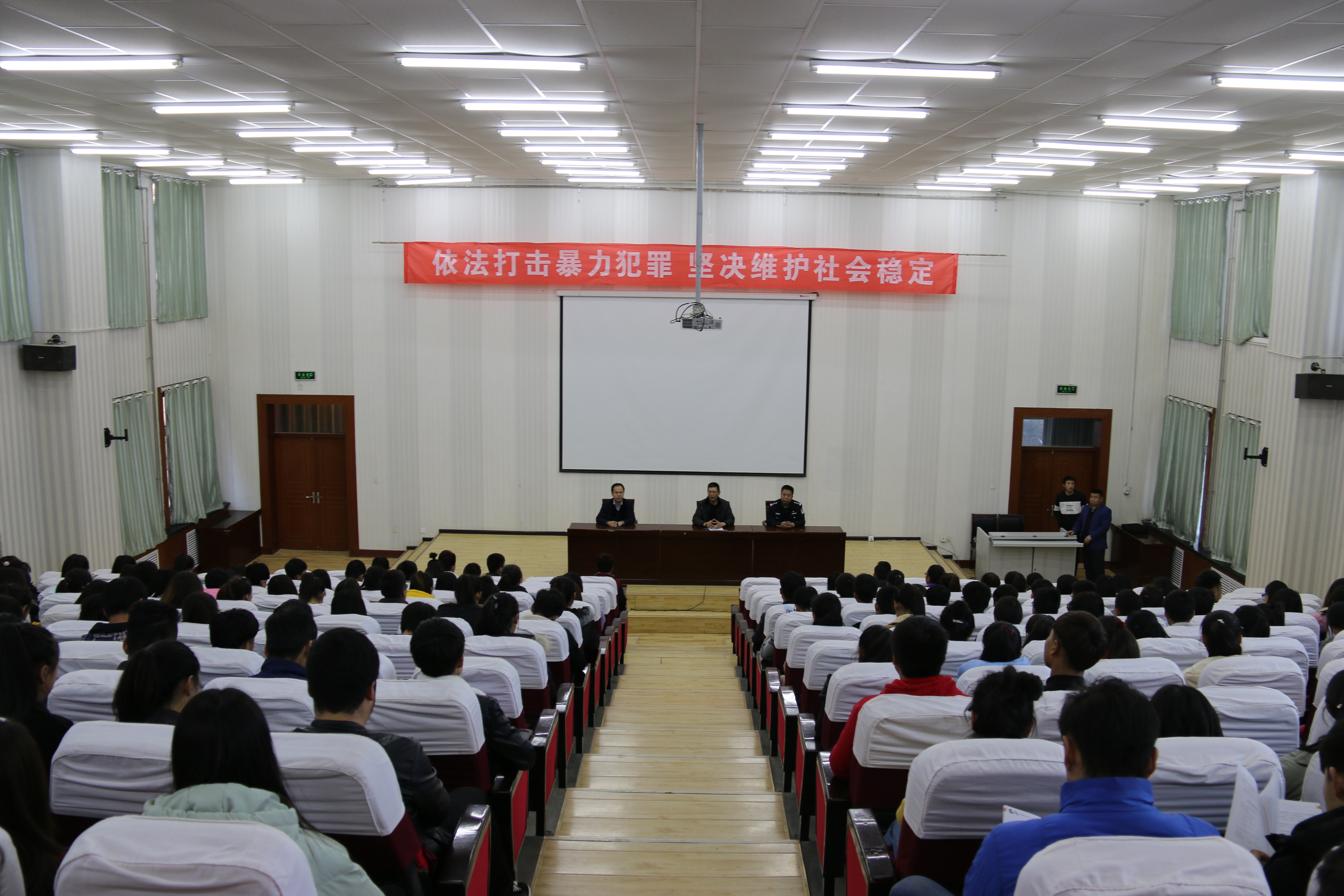 為不斷增強(qiáng)師生的安全防范意識(shí),切實(shí)提高應(yīng)對(duì)突發(fā)事件的自我保護(hù)能力,12月27日下午,涼州區(qū)公安局反恐、特警支隊(duì)民警、西關(guān)街派出所民警走進(jìn)學(xué)院開展了反恐怖普法宣傳活動(dòng)。學(xué)院副院長(zhǎng)王永緒、武威市公安局反恐辦主任兼反恐支隊(duì)隊(duì)長(zhǎng)吳龍出席活動(dòng)并講話,西關(guān)街派出所、學(xué)院保衛(wèi)處負(fù)責(zé)同志及260多名師生參加活動(dòng)。