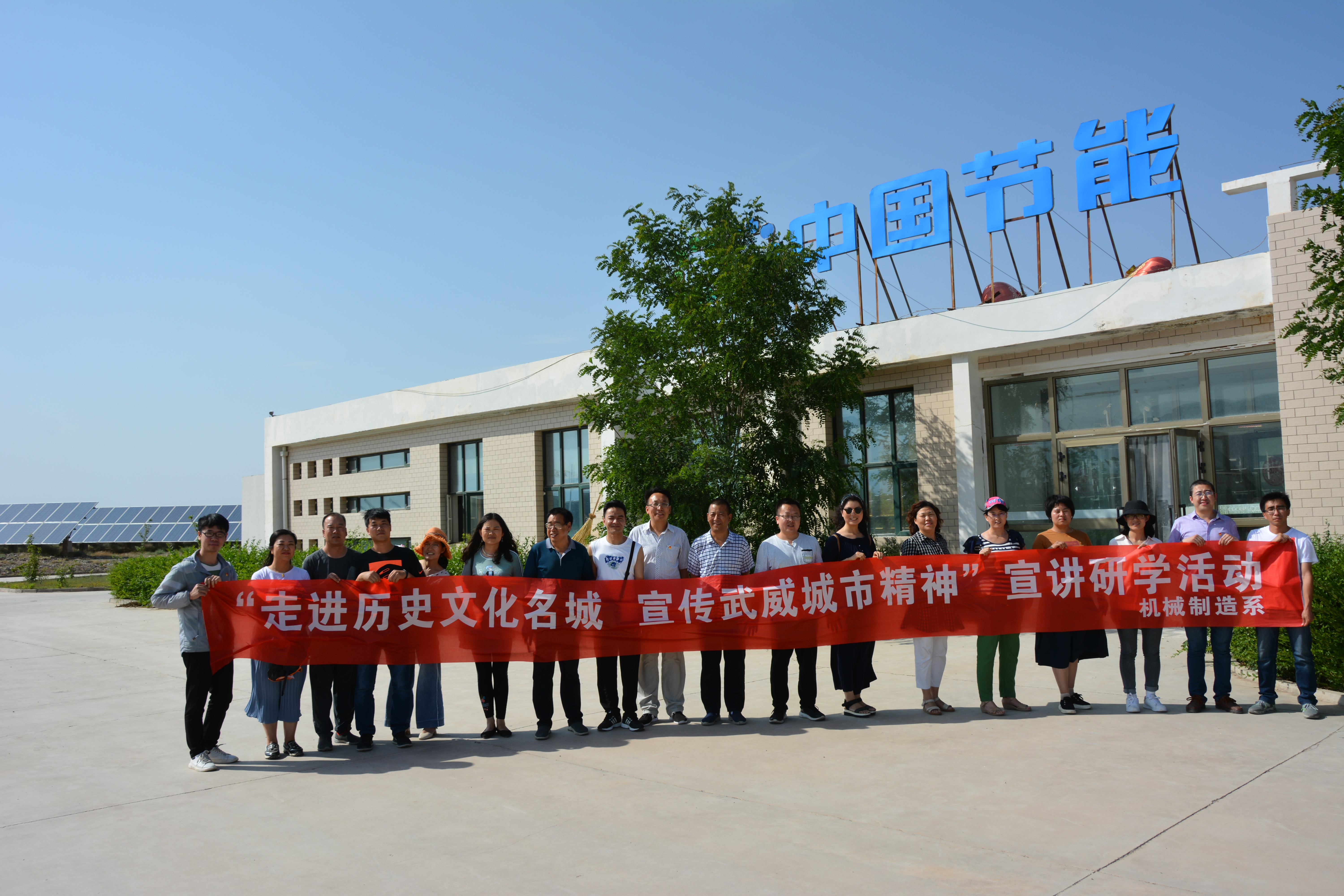 為加強(qiáng)對(duì)武威城市精神的宣傳詮釋力度,感受“天馬星空,自在武威”的文化旅游形象主題宣傳口號(hào),深入挖掘武威歷史文化名城內(nèi)涵,探索武威文化旅游融合發(fā)展的新思路、新方法、新途徑,提高學(xué)院服務(wù)社會(huì)的功能,豐富教職工的精神文化生活。機(jī)械制造系全體教師赴武威金太陽(yáng)新能源高新技術(shù)集中區(qū)開展“走進(jìn)歷史文化名城,宣傳武威城市精神”宣講研學(xué)活動(dòng)。