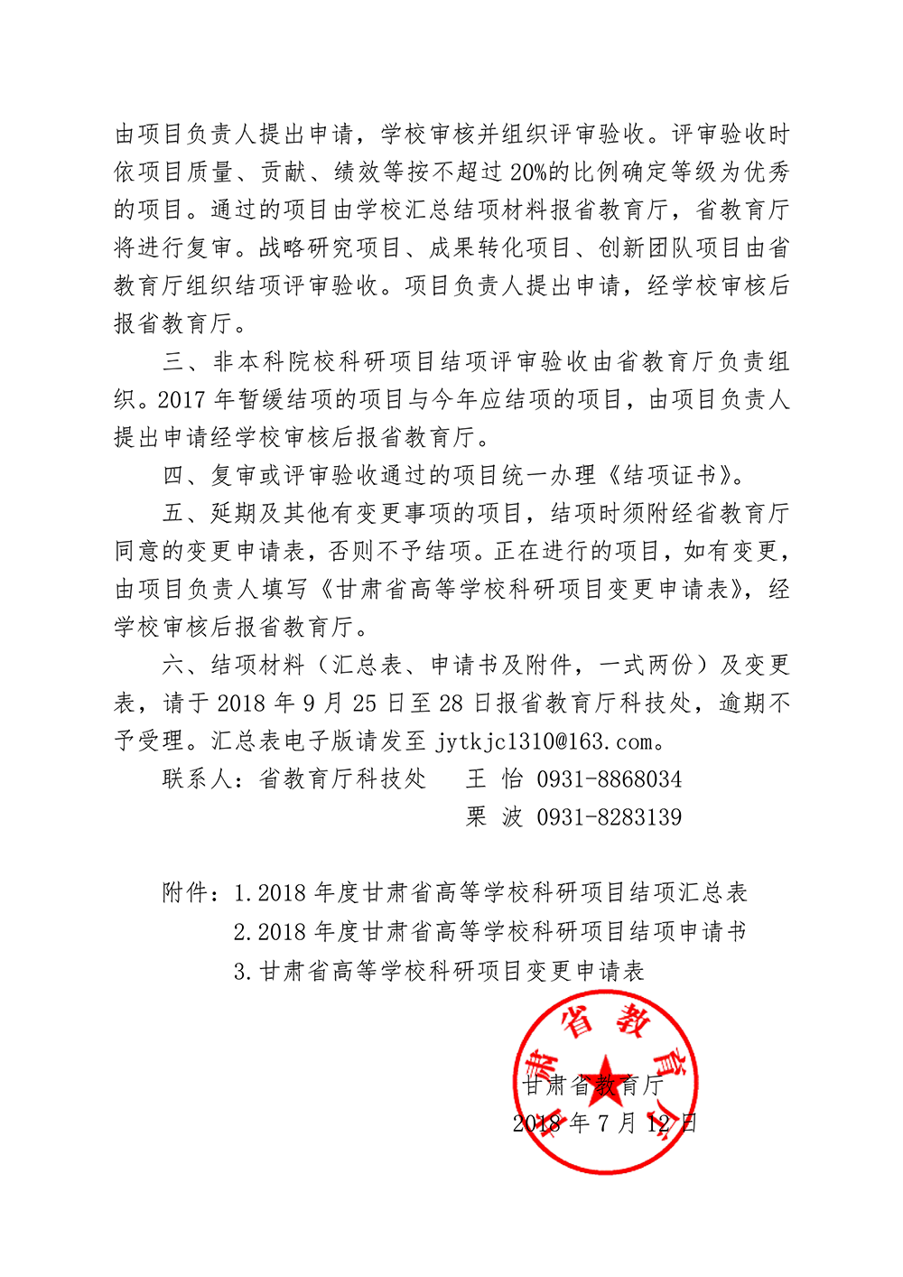 甘肅省教育廳關(guān)于對(duì)2018年度甘肅省高等學(xué)??蒲许?xiàng)目進(jìn)行結(jié)項(xiàng)的通知(附件).doc