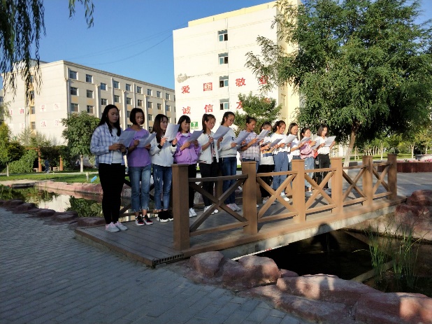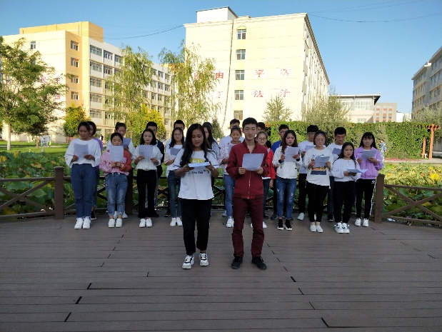 同學(xué)們分別在圖書館、荷花池等地方進行詩詞朗誦及詩詞交流。朗誦的詩詞主要有明代張恒的《涼州詞》、唐代李白的《關(guān)山月》及唐代王昌齡的《從軍行》等多篇優(yōu)秀作品。