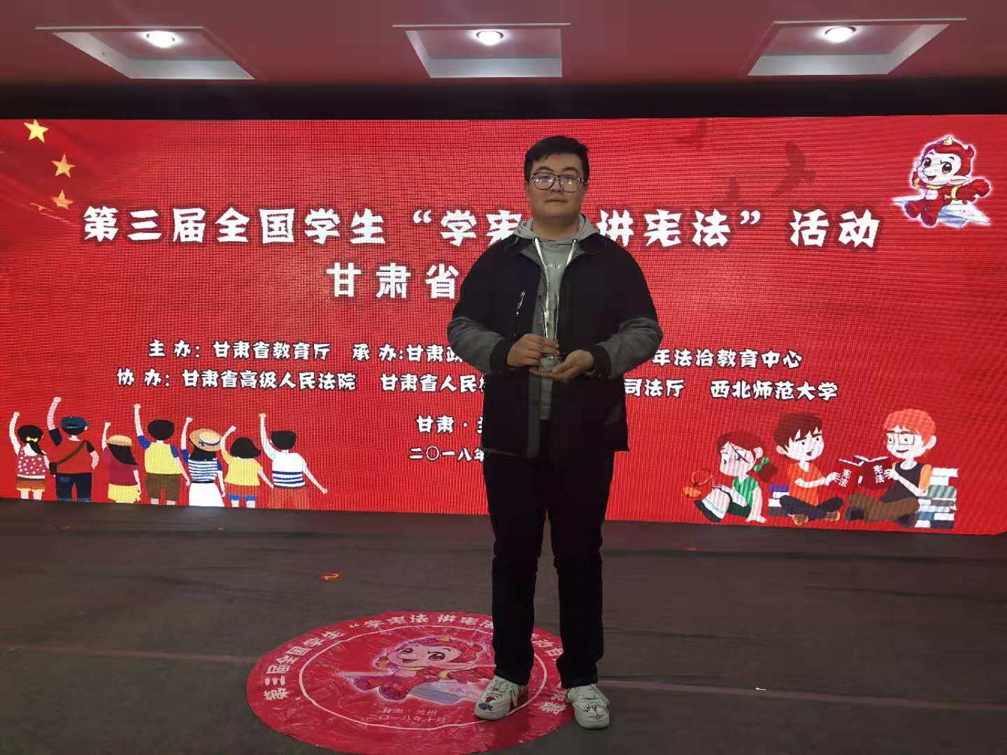 10月15日至19日,由省教育廳主辦的第三屆全國(guó)學(xué)生“學(xué)憲法講憲法”活動(dòng)甘肅省選拔賽在甘肅政法學(xué)院舉行,來(lái)自全省的127名選手參加比賽。省教育廳副廳長(zhǎng)趙凱出席頒獎(jiǎng)儀式并為獲獎(jiǎng)集體和個(gè)人頒獎(jiǎng)。