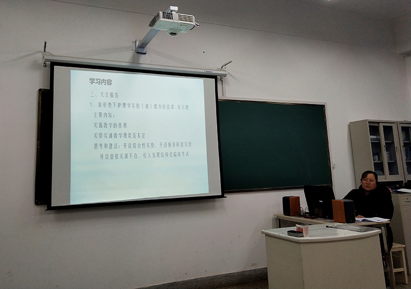2018年11月20日,護理系組織全系教師在卓行樓308室聽取外出培訓(xùn)教師匯報會。