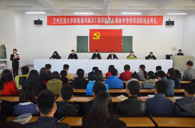 結業(yè)典禮由任陶主持。高蕊宣讀了《蘭州交通大學新能源與動力工程學院關于第九期業(yè)余黨校培訓班結業(yè)情況的通報》。本次培訓歷時半個多月,共有120名學員參加培訓,保證24學時的教學。通過課堂紀律、上課考勤、撰寫心得體會和結業(yè)考試等方面的考查,共有40名擬發(fā)展對象和73名入黨積極分子成績合格,予以結業(yè),合格率為94.17%。任陶宣讀了本次培訓成績合格的學員名單。學員代表孟杰同學在發(fā)言中總結了在業(yè)余黨校學習的收獲,表示在今后要努力學習,積極工作,嚴格要求自己,明確追求與理想,不懈拼搏,爭取早日成為一名光榮的中國共產黨黨員。