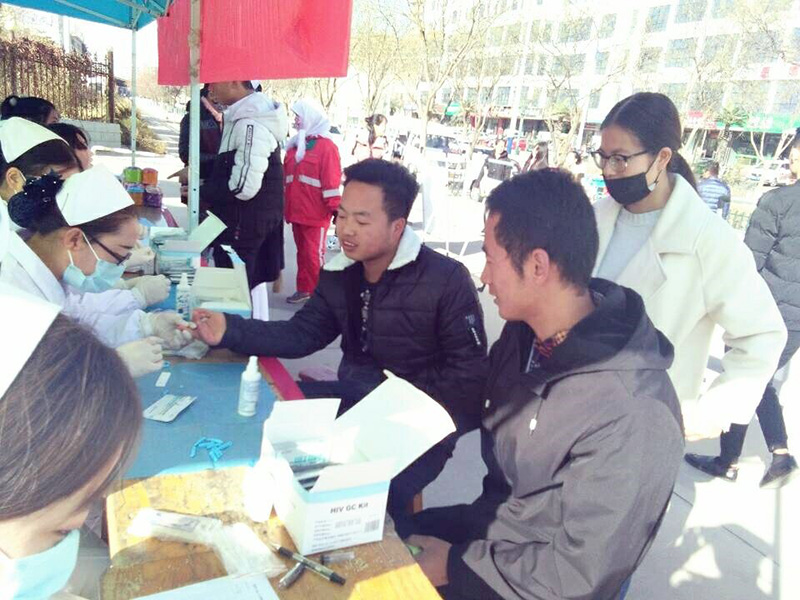 11月17日開始利用周末時(shí)間在武威文化廣場(chǎng)、武威職業(yè)學(xué)院門口等地開展了免費(fèi)檢測(cè)艾滋病與知艾防艾知識(shí)宣傳活動(dòng)?;顒?dòng)吸引了廣大師生及路人,組織井然有序,活動(dòng)場(chǎng)面顯得忙而不亂。在護(hù)理系紅絲帶協(xié)會(huì)志愿者與武威市疾控中心人員嫻熟的操作下,通過指尖采血,HIV病毒膠體金法檢測(cè),共檢測(cè)了80余人,檢測(cè)速度快,精準(zhǔn)度高。檢測(cè)結(jié)束后,向檢測(cè)者贈(zèng)送活動(dòng)宣傳紀(jì)念品。此次檢測(cè)活動(dòng)采取保密制,保護(hù)檢測(cè)者的一切信息。