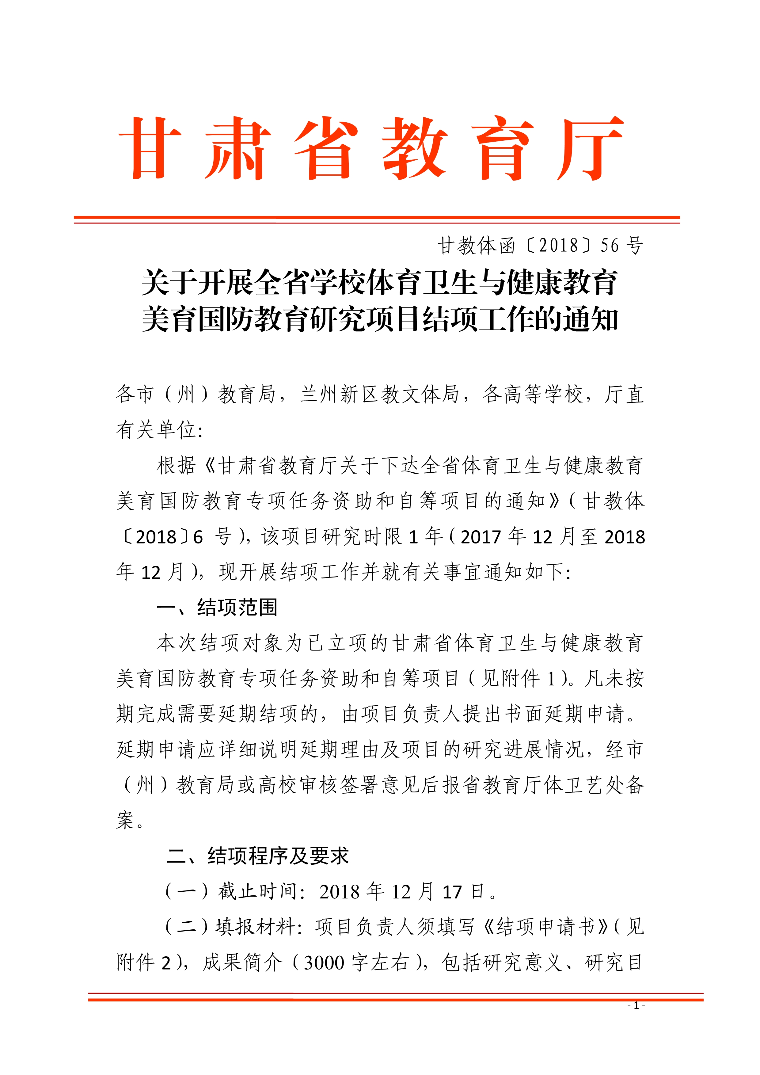 轉(zhuǎn)發(fā)關(guān)于開展全省學校體育衛(wèi)生與健康教育__美育國防教育研究項目結(jié)項工作的通知