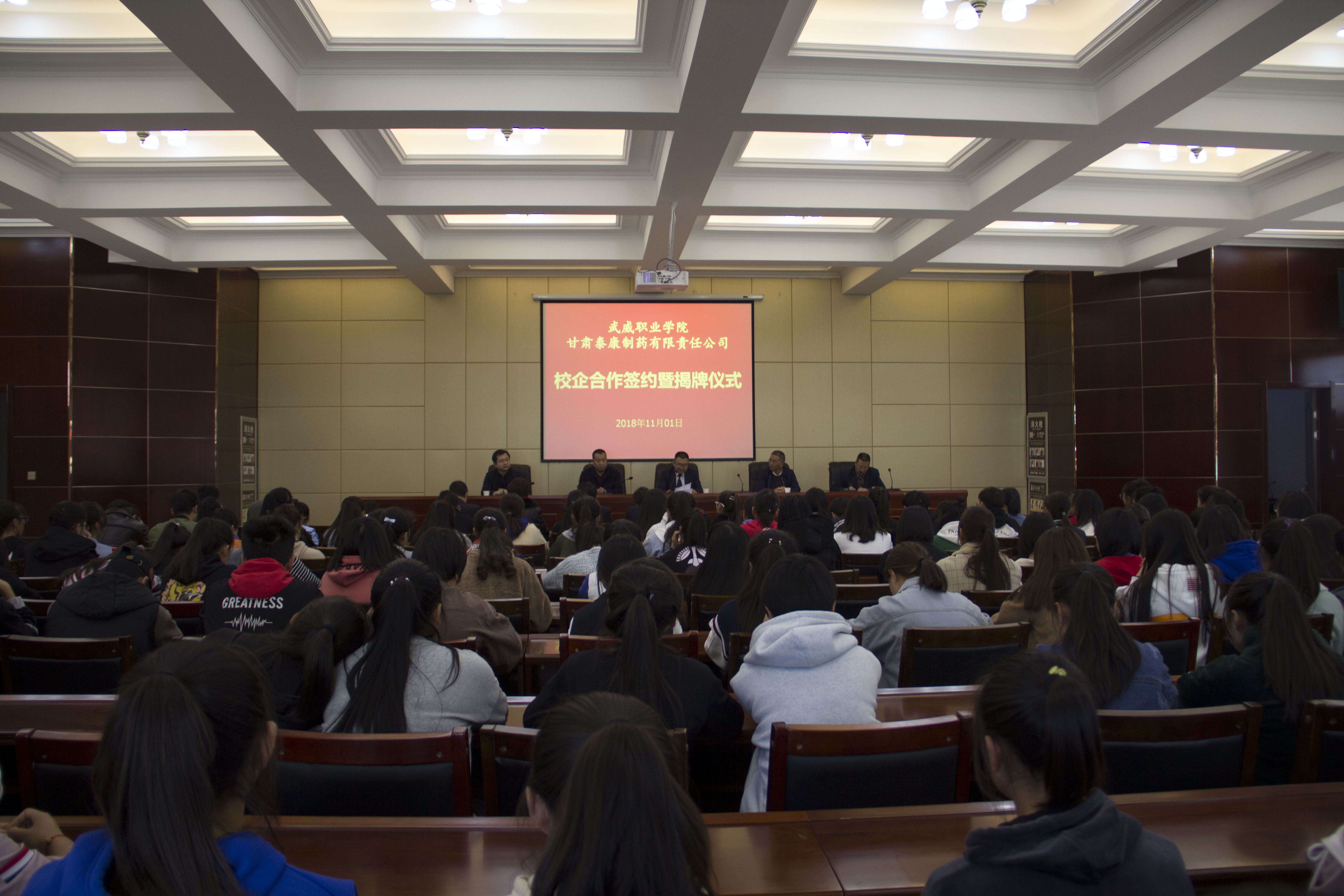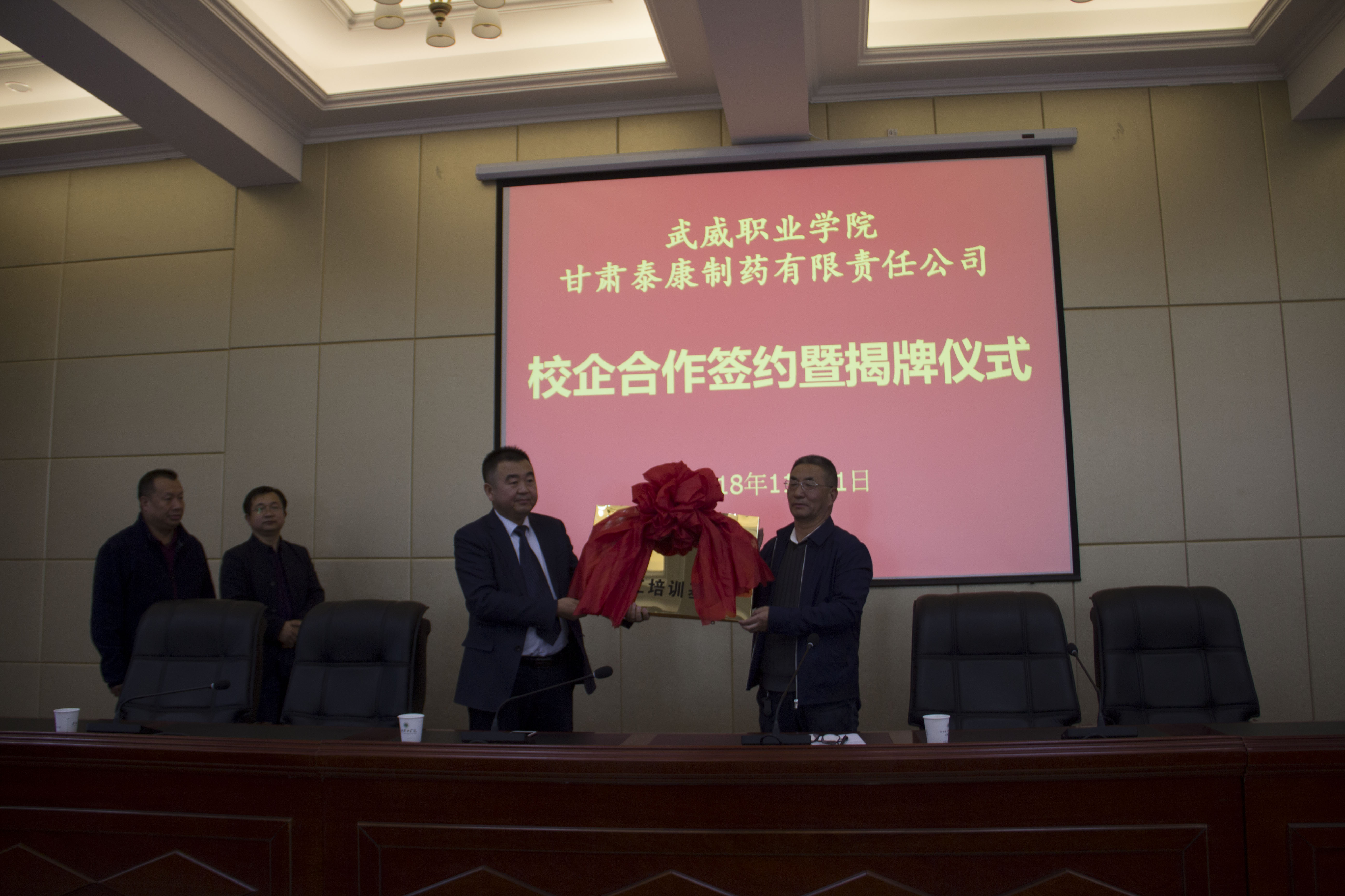 為提高人才培養(yǎng)質(zhì)量和辦學(xué)水平,加強(qiáng)校企協(xié)同育人機(jī)制建設(shè),11月1日下午,藥學(xué)系與甘肅泰康制藥有限責(zé)任公司校企合作共建“就業(yè)實(shí)習(xí)基地”簽約揭牌儀式在行樹樓北側(cè)會議室隆重舉行。甘肅泰康制藥有限責(zé)任公司投資方—北京久朝集團(tuán)產(chǎn)業(yè)中心總監(jiān)楊宏超、公司總工程師毛著鴻、財務(wù)總監(jiān)郝敏等企業(yè)領(lǐng)導(dǎo)出席本次儀式。學(xué)院教務(wù)處處長仲生仁、招生就業(yè)處處長蔡柱山、藥學(xué)系主任魏潤明、副主任楊建美、黨總支副書記單光年及藥學(xué)系160余名師生參加了此次簽約揭牌儀式。儀式由魏潤明主持。
