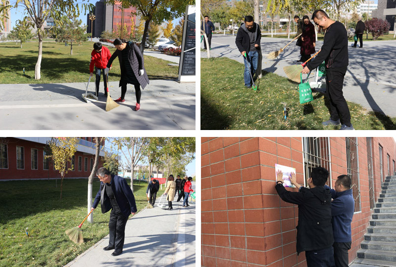 支部全體黨員在大學生活動中心門口、風雨操場及校園馬路清掃落葉和垃圾,并對沿線衛(wèi)生死角進行清理,對不文明行為進行即時勸導。在教學樓、活動中心、公寓樓、食堂等建筑物的醒目位置張貼20余張“創(chuàng)建文明校園”、“禁止吸煙”等標志。通過開展“創(chuàng)建文明校園”活動,進一步提升我院“創(chuàng)建文明城市”迎檢和“創(chuàng)建文明校園”活動效果。