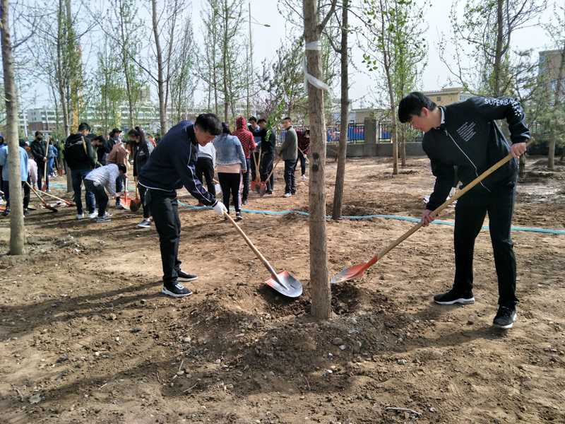 醫(yī)學(xué)技術(shù)與信息管理系黨總支在深入學(xué)習(xí)黨的十九大精神,貫徹全國兩會(huì)精神,積極響應(yīng)習(xí)近平總書記提出的“青山綠水就是金山銀山”的生態(tài)建設(shè)號召,緊緊圍繞武威市委提出的“依法治綠、依規(guī)興綠、拆墻透綠、見縫插綠、應(yīng)綠則綠、成倍增綠”的目標(biāo)要求。4月13日下午,醫(yī)學(xué)技術(shù)與信息管理黨總支全體黨員干部參加了校園植樹勞動(dòng),充分發(fā)揮黨員的先鋒模范帶頭作用,為武威市創(chuàng)建全國文明城市和學(xué)院創(chuàng)建省級文明校園貢獻(xiàn)自己的力量。