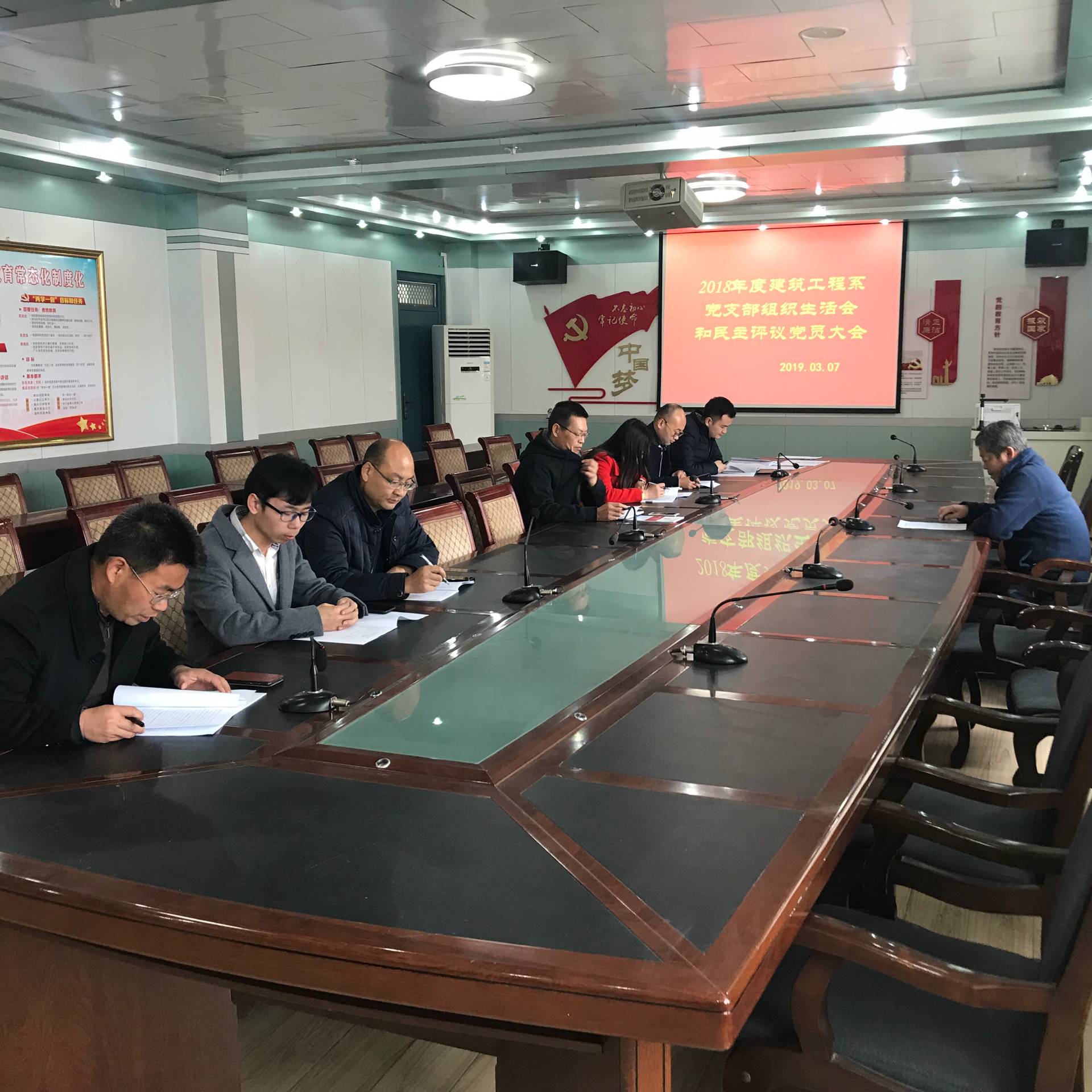 3月7日,建筑工程系黨總支教學管理支部和學生管理支部在博學樓二樓會議室召開2018年度基層黨支部組織生活會暨民主評議黨員大會。