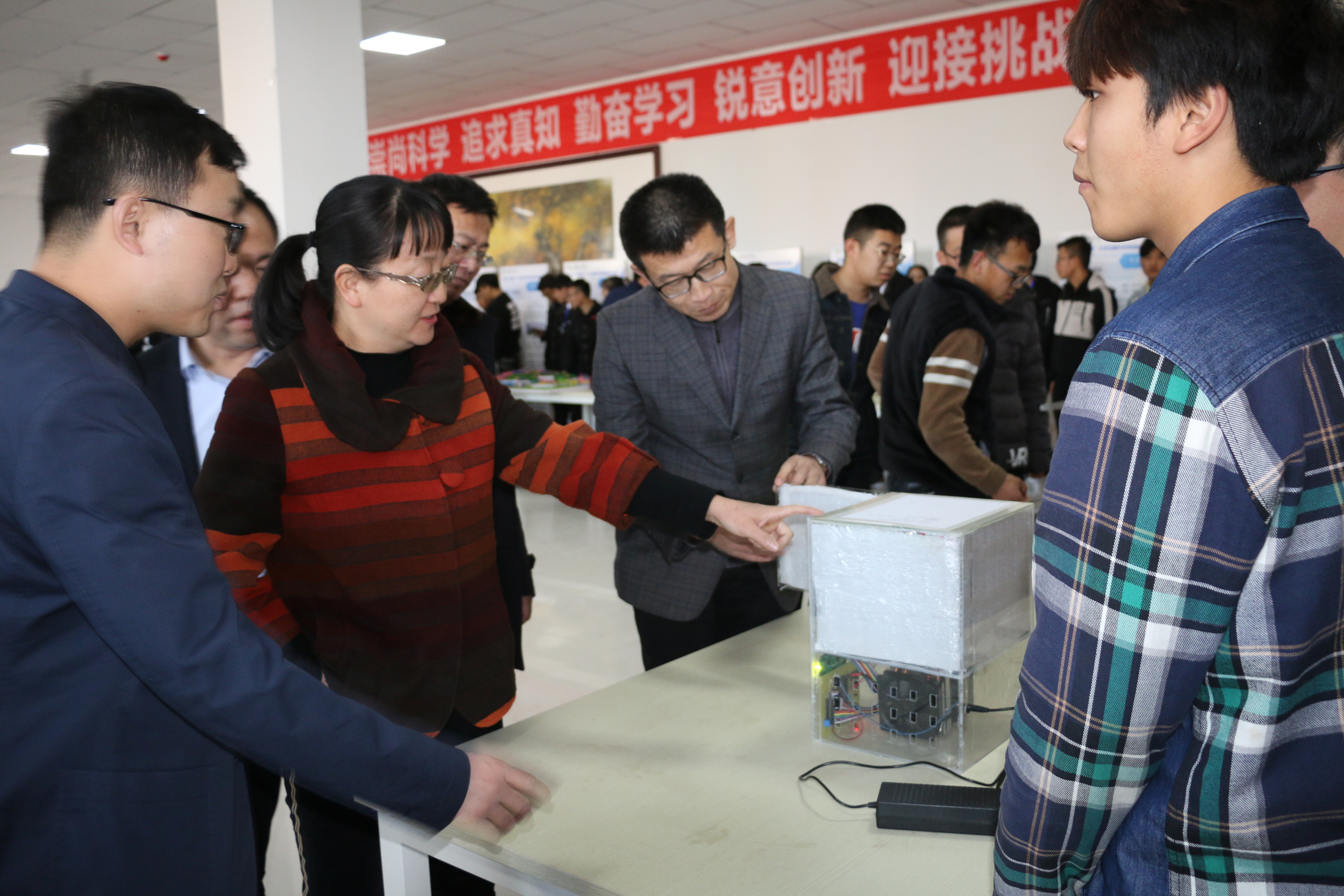 田迎春在閉幕式上對學院首屆“挑戰(zhàn)杯”大學生課外學術(shù)科技作品競賽獲獎的集體和個人表示了祝賀,并回顧了學院參加前兩屆甘肅省“挑戰(zhàn)杯”的情況。她希望同學們積極踴躍地參與到科技創(chuàng)新活動中來,在活動中切磋技藝、挑戰(zhàn)自我、展示才華;希望老師們加強指導,引導學生做好理論實踐的結(jié)合,制作出更多高質(zhì)量的課外學術(shù)作品;希望學院相關(guān)部門群策群力,以首屆“挑戰(zhàn)杯”為契機,繼續(xù)拓展學院科技文化創(chuàng)新活動新平臺。最后,她要求擬推薦參加第十二屆“挑戰(zhàn)杯”甘肅省大學生課外學術(shù)科技作品競賽的作品要做好進一步改進和完善,力爭取得好成績。