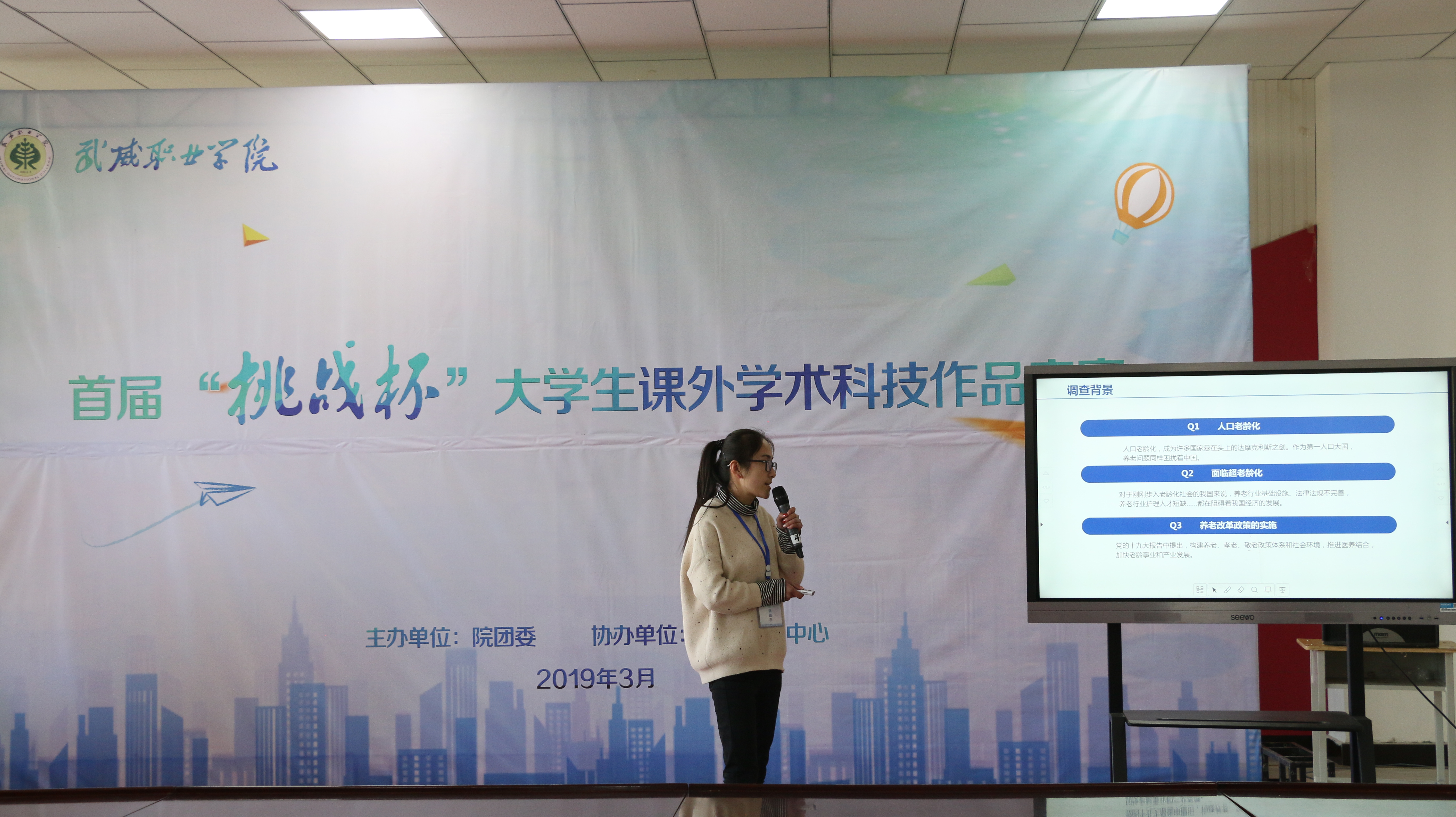 3月14日下午,學院首屆“挑戰(zhàn)杯”大學生課外學術(shù)科技作品競賽閉幕式在大學生活動中心學生事務(wù)中心舉行,副院長田迎春出席活動并講話,相關(guān)部門負責人和參賽師生共100多人參加了閉幕式。