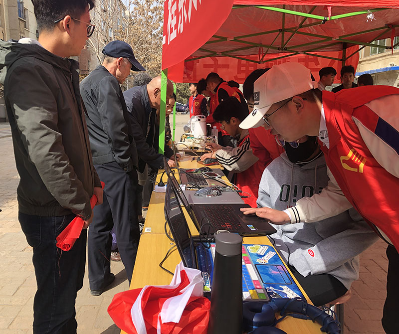 3月23日上午,我系小牛頓電子協(xié)會和計算機協(xié)會的志愿者們,來到泰安小區(qū)開展了以“發(fā)揚雷鋒精神,科技服務(wù)進社區(qū)”為主題的家電、電腦義務(wù)維修活動。志愿者們對小區(qū)居民送來的電水壺、電飯煲、微波爐、影碟機等家電進行了維修,受到了小區(qū)居民的歡迎。志愿者們還不辭辛苦,上門對有故障的電腦進行重裝系統(tǒng)、更新驅(qū)動等服務(wù),師生們認真負責(zé)、一絲不茍的精神得到了居民們的贊許。