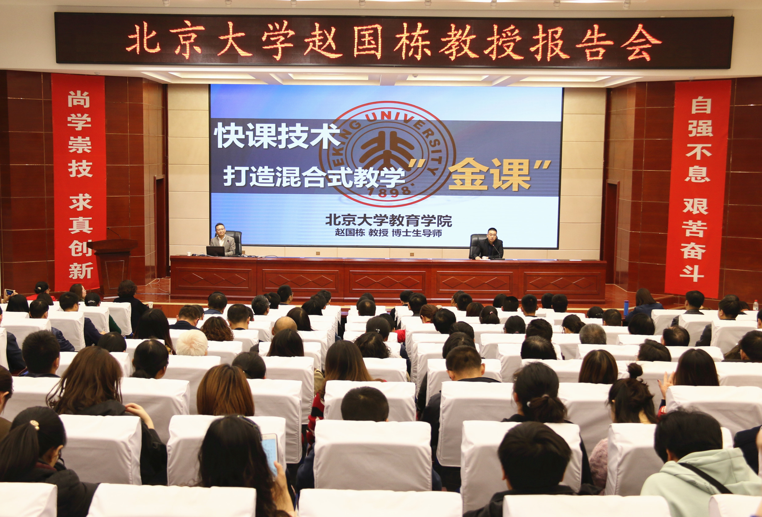 4月15日,北京大學(xué)博士生導(dǎo)師,微課技術(shù)實(shí)驗(yàn)室主任,“國際信息研究學(xué)會(huì)”(IS4IS)中國分會(huì)教育信息化專業(yè)委員會(huì)副主任, “中國開放式教育資源協(xié)會(huì)”(CORE)專家趙國棟教授,應(yīng)邀到學(xué)院作專題報(bào)告。 教務(wù)處副處長(zhǎng)張世亮主持報(bào)告會(huì),甘肅冶金職業(yè)技術(shù)學(xué)院、甘肅畜牧工程學(xué)院、武威職業(yè)教育集團(tuán)、蘭州交通大學(xué)新能源與動(dòng)力工程學(xué)院以及各系教師代表220人聆聽了報(bào)告。