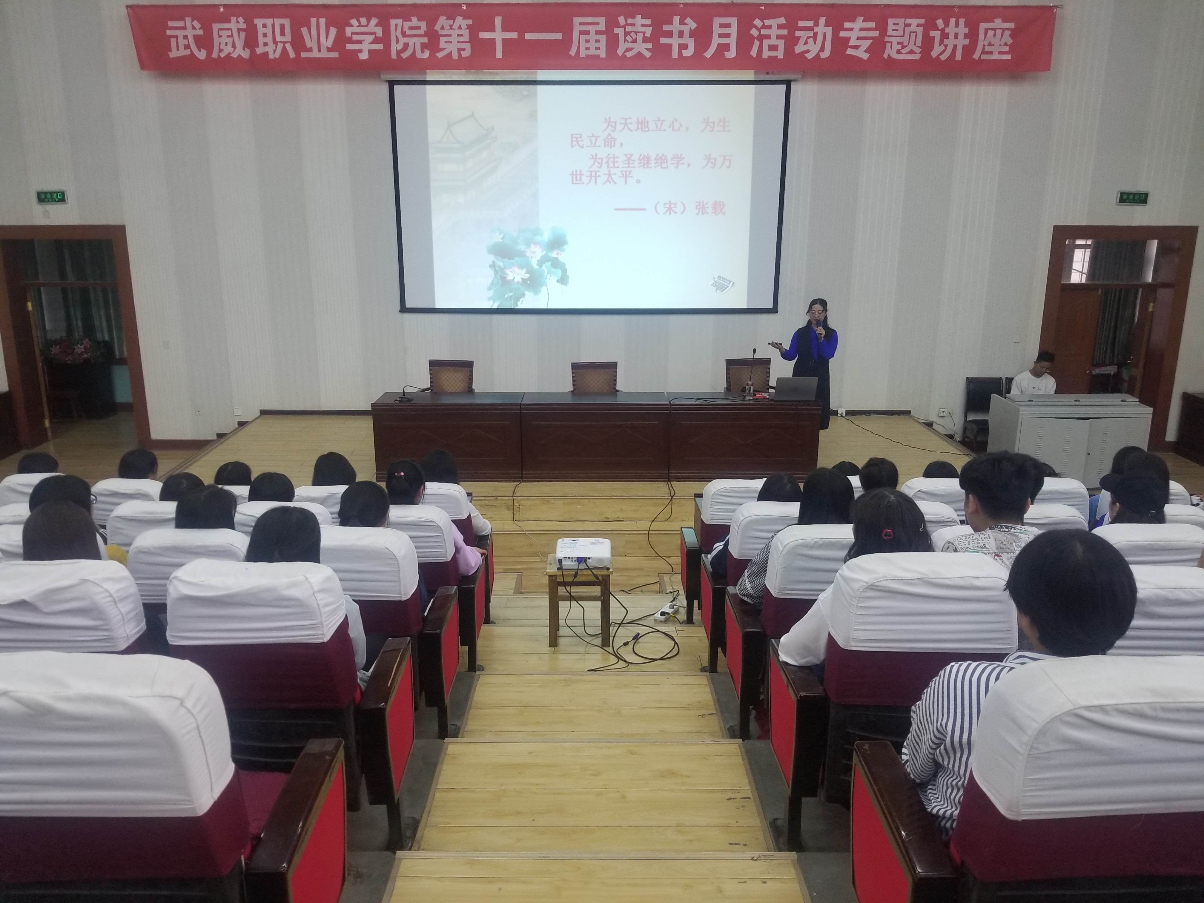 武威職業(yè)學(xué)院第十一屆讀書月活動專題講座在正德廳舉行。4月24日學(xué)院中文專業(yè)教授趙穎老師應(yīng)邀進(jìn)行了《走進(jìn)國學(xué)》的專題講座,近300名師生參加了此次講座。