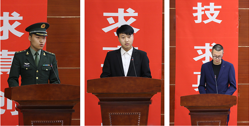 在啟動(dòng)儀式上,現(xiàn)役軍人代表31666部隊(duì)防化營(yíng)防化二連排長(zhǎng)唐功財(cái)、學(xué)院退役大學(xué)生代表李乾和入伍意愿大學(xué)生代表李宏飛進(jìn)行了發(fā)言,講出了各自的感想和感受。