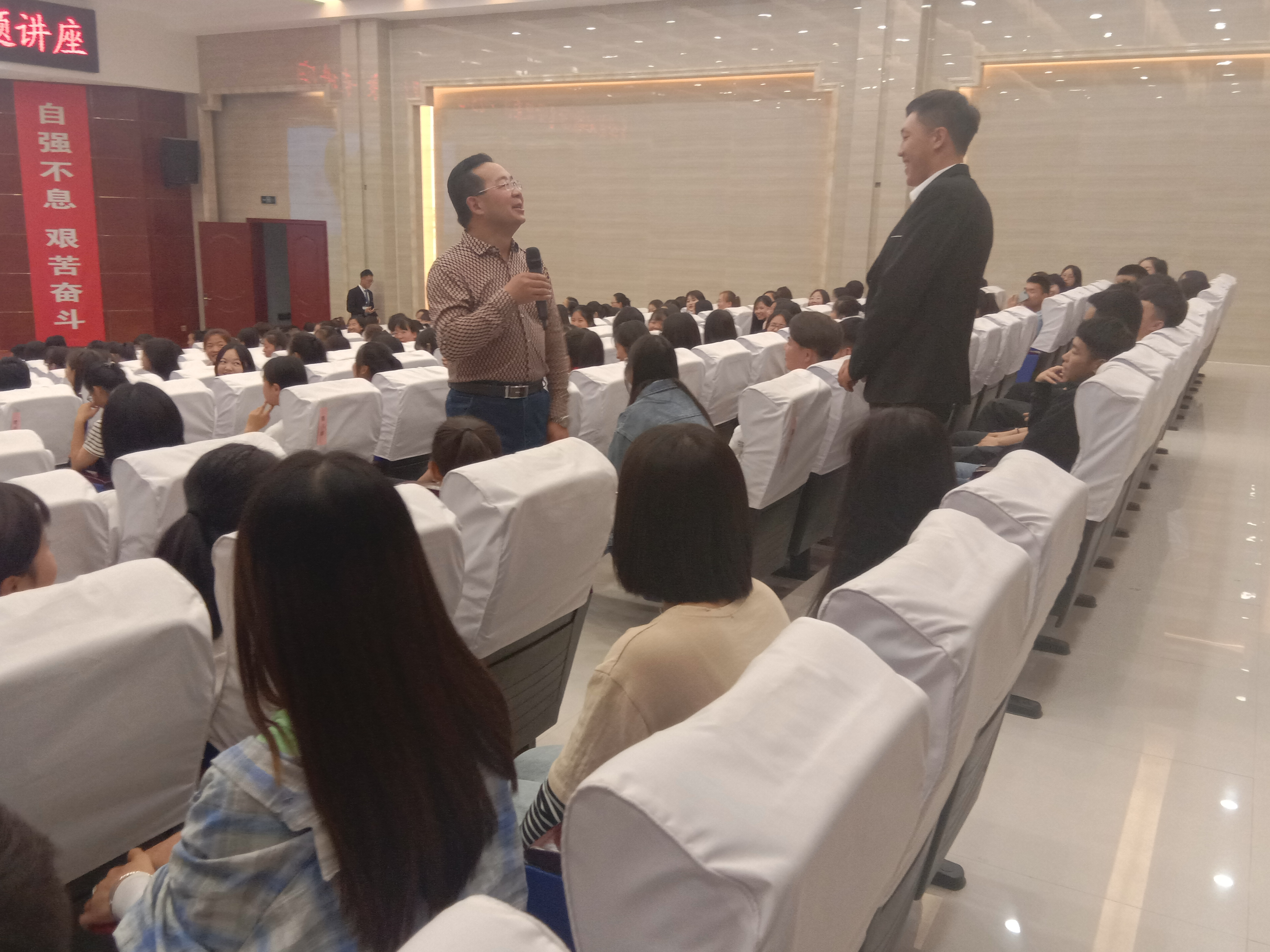 金玉龍首先提出了一個(gè)問題:什么是愛情?這個(gè)看似簡單的問題卻使在場學(xué)生紛紛陷入思考。接著金玉龍和現(xiàn)場同學(xué)一起做游戲并通過引用有關(guān)愛情的名言來闡釋何為愛情——明確指向某具體對象,有著明確的生理基礎(chǔ)的一種人類情感,也指基于這種情感產(chǎn)生的親密的人際關(guān)系。金玉龍列舉了很多校園愛情故事,借此教會(huì)大家分辨“愛情的可能與不可能”,他認(rèn)為真正的愛情應(yīng)遵循自愿、平等、合法、無傷的基本原則。他通過講述生動(dòng)的事例以及對熱門影視劇人物感情關(guān)系的分析來解讀戀愛周期,幫助同學(xué)們更好地理解“愛情可能是什么”。講座的最后同學(xué)們踴躍提問和金老師的精彩解答掀起了本次講座的高潮,最后各位同學(xué)紛紛簽名拍照留念。