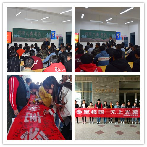 首先蔡海老師向同學(xué)們細(xì)致地講解了今年的征兵條件、報(bào)名方法及相關(guān)優(yōu)待政策,深入宣傳依法服兵役的積極意義,鼓勵(lì)適齡青年積極報(bào)名應(yīng)征,報(bào)效祖國(guó)。同時(shí)邀請(qǐng)2017級(jí)設(shè)施農(nóng)業(yè)與裝備大專(zhuān)班趙文文同學(xué)做了個(gè)人事跡匯報(bào)。該生曾在陸軍某部服役,現(xiàn)光榮退伍,回校就讀。交流中,他鼓勵(lì)同學(xué)們要敢于有夢(mèng)、敢于追夢(mèng)、敢于圓夢(mèng),讓青春在軍營(yíng)的歷練中、在為祖國(guó)的奉獻(xiàn)中閃光。他還生動(dòng)的講述了部隊(duì)的生活和訓(xùn)練情況,這段經(jīng)歷使他收獲了遠(yuǎn)大的理想信念,培養(yǎng)了良好的行為習(xí)慣,練就了強(qiáng)健的身體,這些將會(huì)讓他終身受益。活動(dòng)最后進(jìn)行了“參軍報(bào)國(guó),無(wú)上光榮”主題簽名儀式。