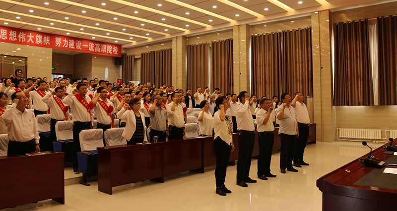 以“慶祝新中國七十華誕 弘揚新時代尊師風尚”為主題的教師節(jié)慶祝大會在莊嚴的《國歌》聲中拉開帷幕。學院黨委書記、院長趙明帶領(lǐng)全體教師重溫了教師誓詞,鏗鏘有力的誓詞、莊嚴的承諾,進一步堅定了廣大教師立德樹人的理想和信念。黨委副書記翟存祥領(lǐng)學了高校教師行為準則,對高校教師行為提出了要求。