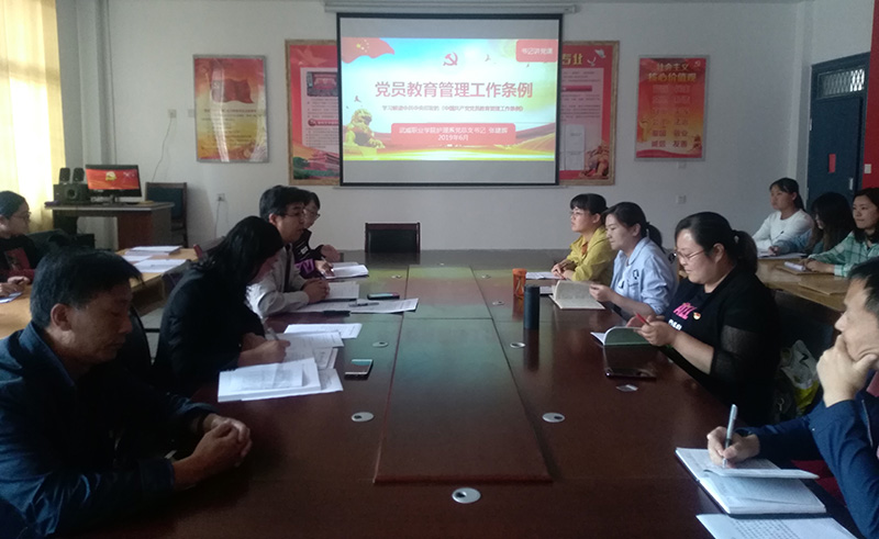 護理系黨總支書記張建輝以《黨員教育管理工作條例》為題,從條例制定的背景及意義、如何貫徹落實等方面帶領大家逐條逐句學習解讀。