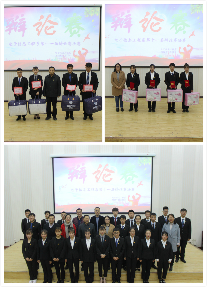 2019年11月11日進行了“集體成就個人”和“個人成就集體”為主題的辯論賽決賽。本次辯論賽共分為開篇立論、攻辯、攻辯小結、自由辯論、總結陳詞五個環(huán)節(jié)。在整個比賽中,雙方辯手爭鋒相對,步步緊逼,在最精彩的自由辯論環(huán)節(jié),選手你來我往,旁征博引,臺下掌聲不斷。經過緊張而又激烈的角逐, 18電子信息工程技術大專班以精彩的表現(xiàn)獲得了辯論賽的冠軍。
