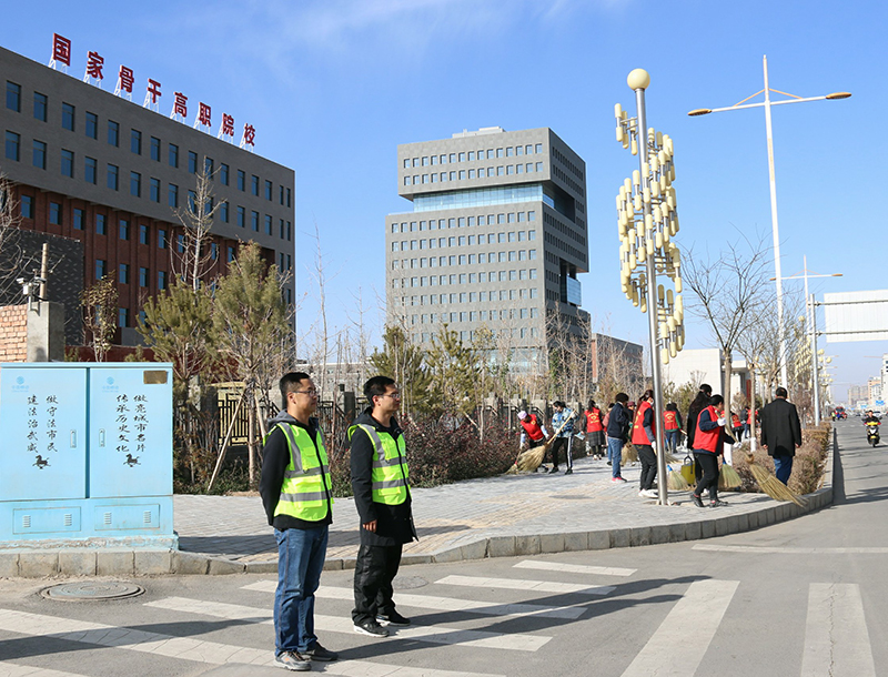 為認真落實全市創(chuàng)城工作推進會會議精神,提升全國文明城市創(chuàng)建工作水平,建設人民滿意的幸福城市,在市委市政府及創(chuàng)城辦的統(tǒng)一安排下,11月15日下午,在學院副院長王守云、張開禮的帶領(lǐng)下,我院100多名黨員干部組成的志愿者服務隊,集中在我院的劃定區(qū)域,進行常態(tài)化的文明交通勸導和環(huán)境衛(wèi)生整治活動。