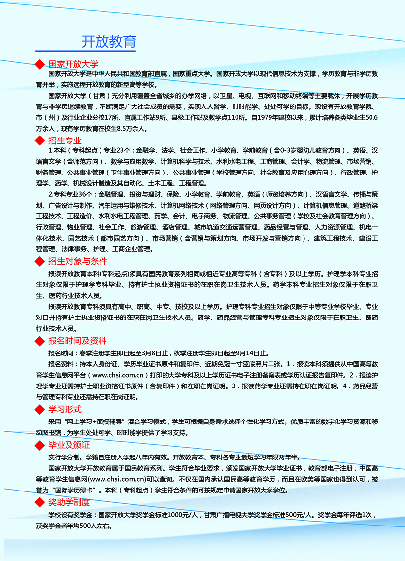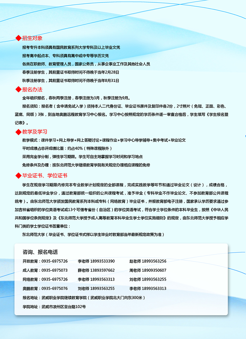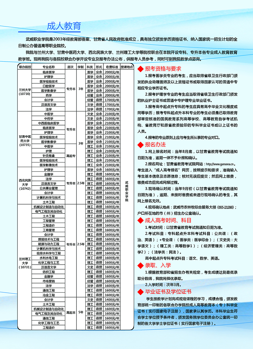 武威職業(yè)學院繼續(xù)教育學院2020年招生簡章