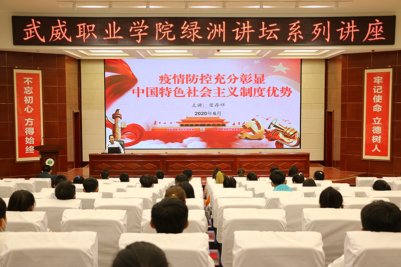 6月9日,武威職業(yè)學(xué)院“綠洲講壇”第33期在學(xué)院菁英廳舉行,學(xué)院黨委副書記翟存祥教授作了題為《疫情防控充分彰顯中國特色社會主義制度優(yōu)勢》的講座。中科低碳新能源技術(shù)學(xué)院師生代表共150余人參加了報告會。