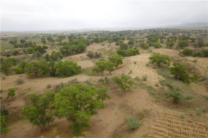 學(xué)院堅(jiān)持“綠水青山就是金山銀山”的理念,大力開展生態(tài)扶貧,積極聯(lián)合中國科學(xué)院上海核創(chuàng)院科學(xué)家赴八步沙林場調(diào)研并開展結(jié)對(duì)幫扶工作,捐贈(zèng)新型節(jié)水材料在八步沙共建科技治沙造林示范基地1000畝。栽植花棒、梭梭、檸條等抗旱樹種,掛牌成立學(xué)院教育教學(xué)實(shí)踐基地,為八步沙林場治沙造林探索一條新的路徑。