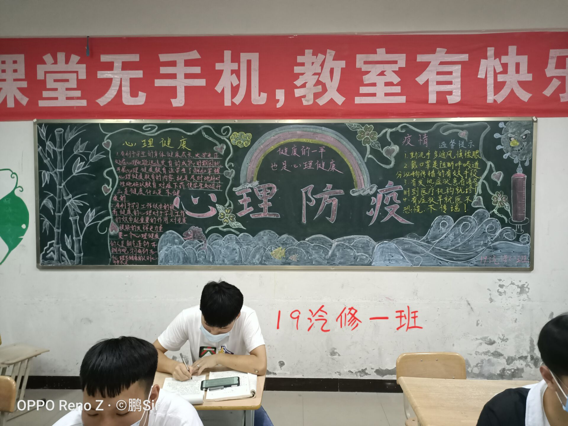 疫情期間,為了返校的大學(xué)生有更好的心理健康,提高大學(xué)生心理素質(zhì),6月8日我系分團委組織各班開展以“心理防疫”為主題的團日活動,相應(yīng)開展了“心理防疫”黑板報班級比賽。