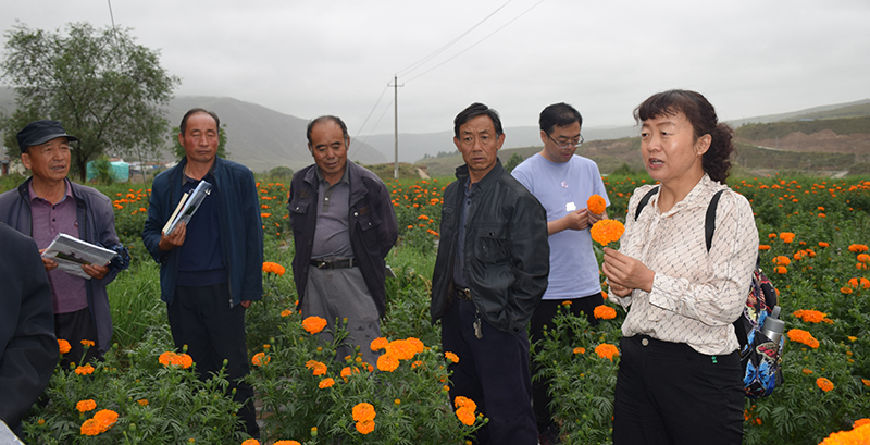 座談會(huì)結(jié)束后,銀春花副教授做了題為“花?;ɑ苓x擇”的專題講座,就花海品種的選擇及種植養(yǎng)護(hù)的關(guān)鍵問題做了詳細(xì)的講解,參加培訓(xùn)的人員紛紛表示,收獲頗豐,為今后黑松驛鎮(zhèn)的在美化環(huán)境,花海建設(shè)中提供了依據(jù)。銀春花還在花海現(xiàn)場指導(dǎo)農(nóng)戶開展了花卉的田間管理及病蟲害防治。