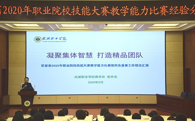 2020年9月2日上午,學院在菁英廳舉辦甘肅省2020年職業(yè)院校技能大賽教學能力比賽經驗分享會,學院各級參賽隊員、院領導、中層以上管理干部、教學能力比賽指導組成員以及自愿報名參加分享會人員共210人參加,會議由學院黨委副書記翟存祥主持。