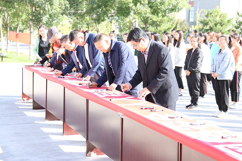 參會領(lǐng)導及師生就“網(wǎng)絡(luò)安全,人人有責,文明上網(wǎng),從我做起”進行集體簽名。