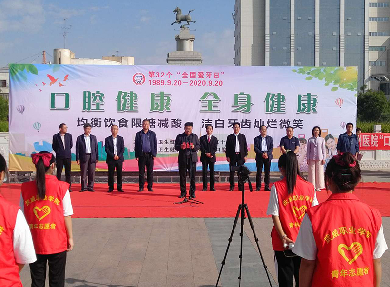 2020年9月20日是第32個“全國愛牙日”,為進一步普及口腔健康知識,結(jié)合今年全國愛牙日“口腔健康,全身健康”的主題,9月20日上午,由武威市衛(wèi)生健康委員會、武威市紅十字協(xié)會牽頭在文化廣場組織開展了“9.20全國愛牙日”主題宣傳活動。學(xué)院黨委委員、副院長王守云、醫(yī)學(xué)技術(shù)與信息管理系黨總支書記黃文源及醫(yī)學(xué)技術(shù)與信息管理系100多名口腔醫(yī)學(xué)技術(shù)專業(yè)學(xué)生參加了志愿服務(wù)活動。