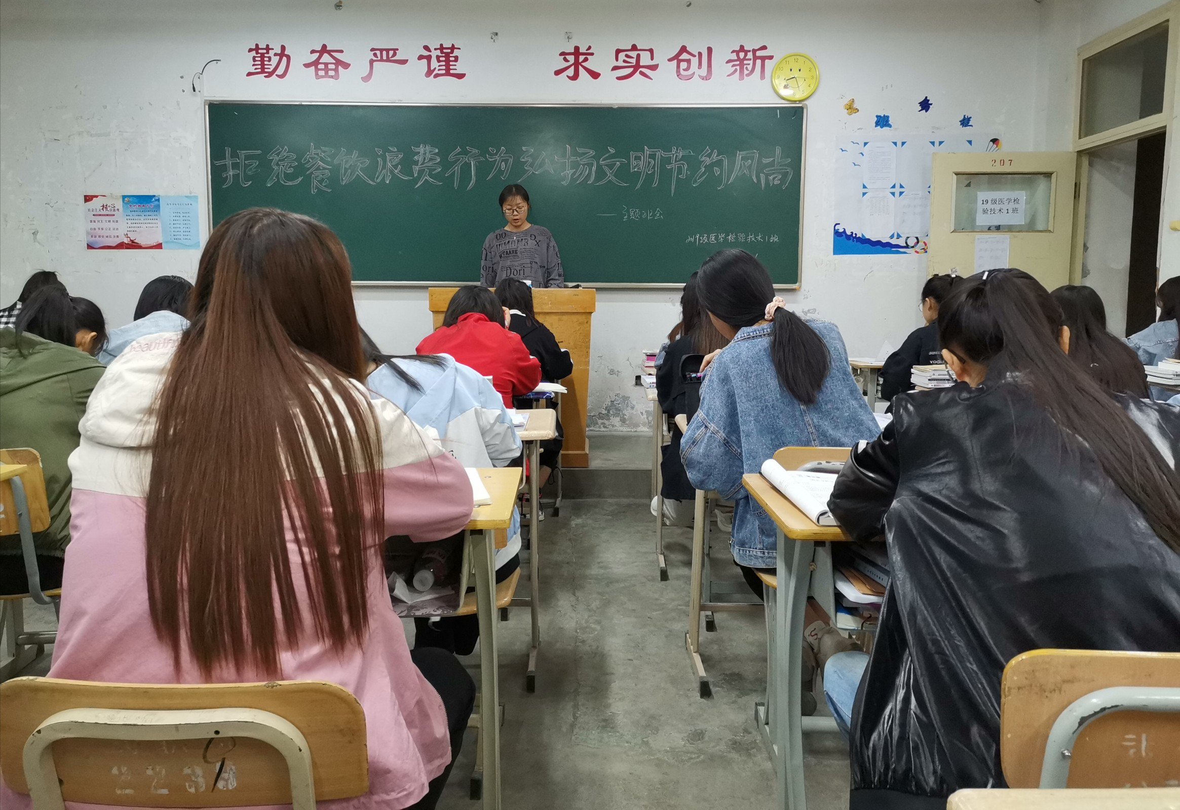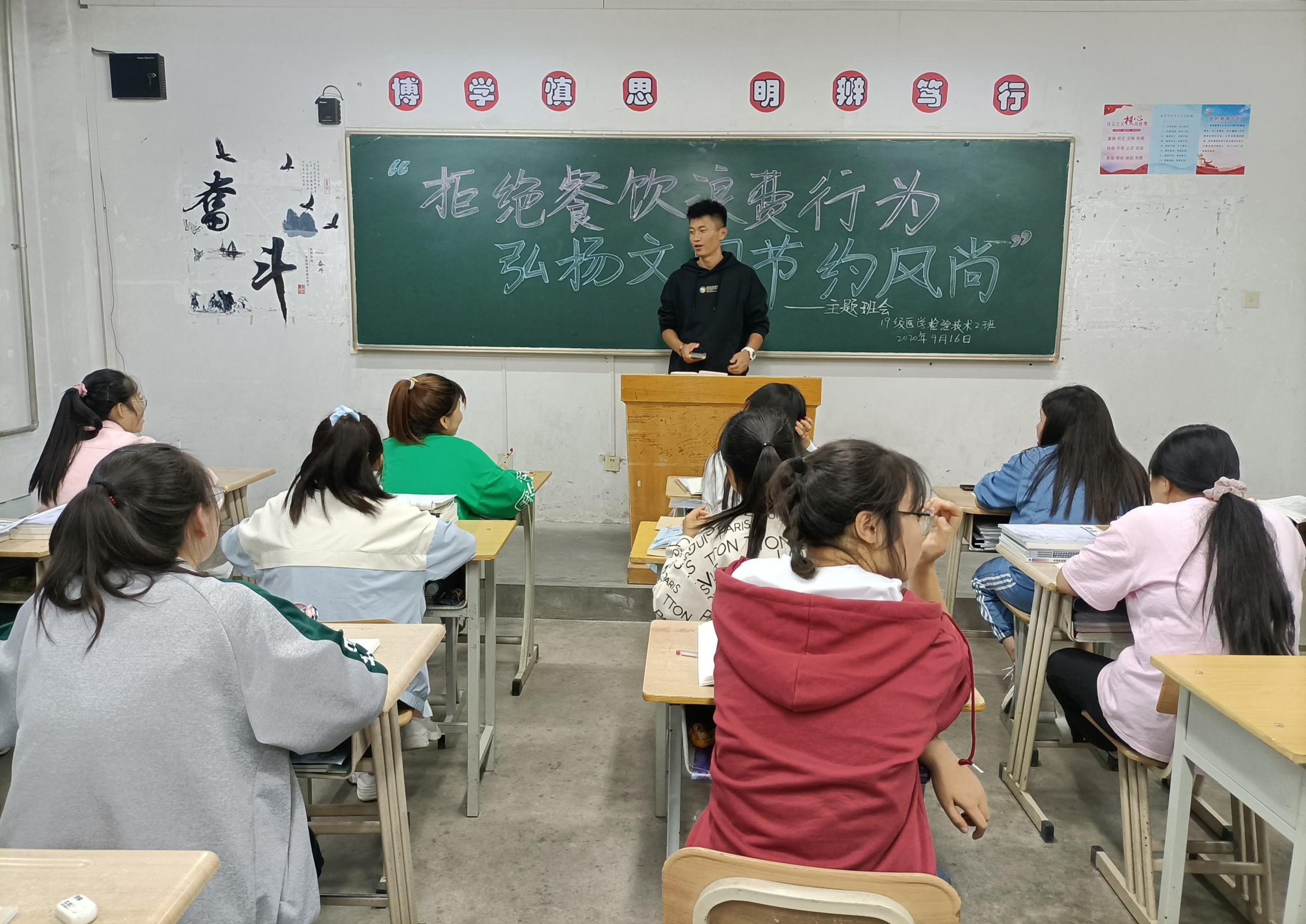 為深入貫徹落實習近平總書記關于制止餐飲浪費行為的重要指示精神,確?!肮獗P行動”取得實效,進一步引導我系學生大力弘揚勤儉節(jié)約傳統(tǒng)美德,培養(yǎng)勤儉節(jié)約良好習慣,全力營造“浪費可恥、節(jié)約光榮”的濃厚氛圍,醫(yī)學技術與信息管理系于9月16日各教學班召開主題班會活動。