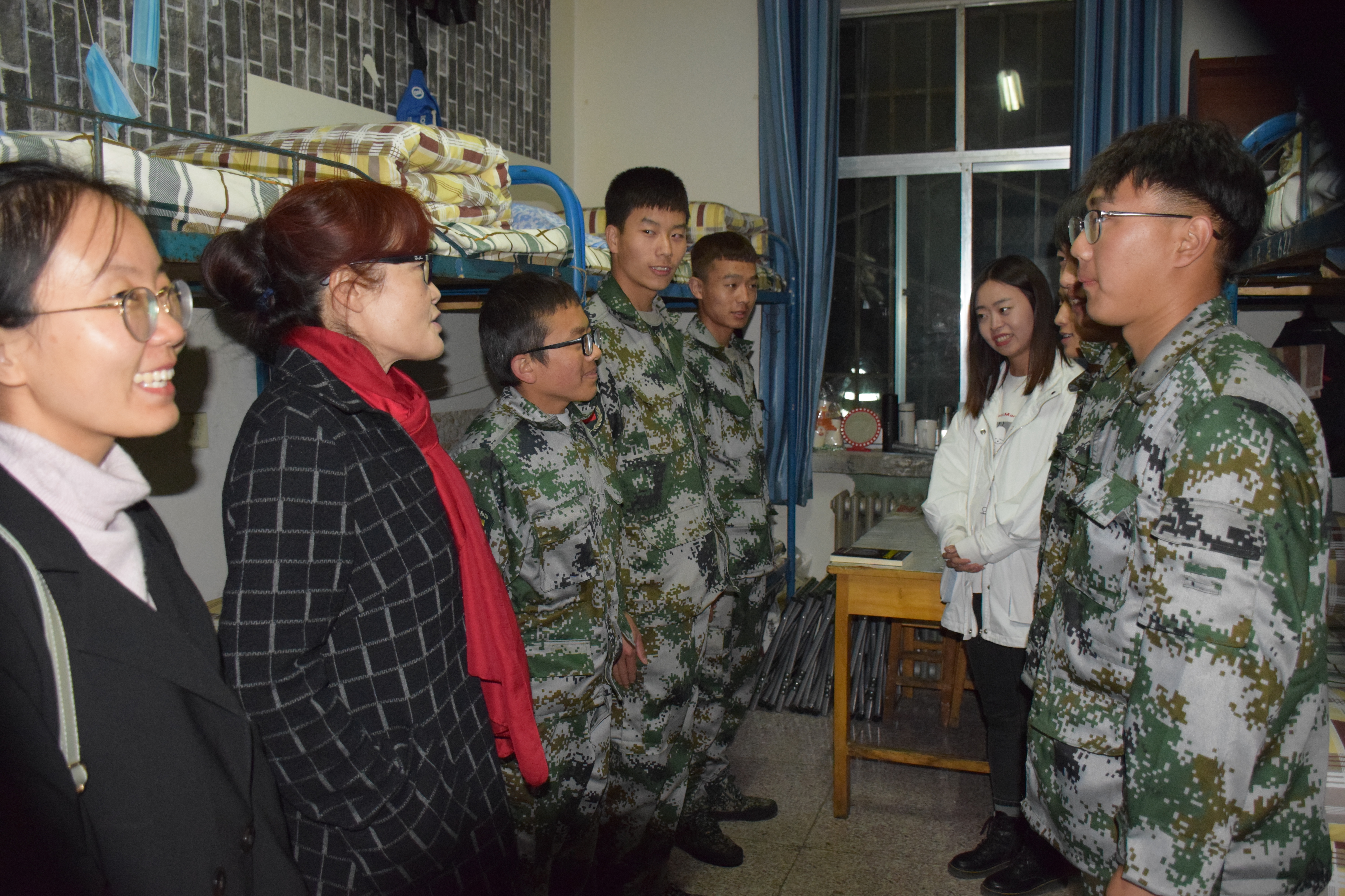 ????? 10月14日晚,現(xiàn)代農(nóng)業(yè)技術(shù)系全體新生班主任在系黨總支書(shū)記晏素珍同志的帶領(lǐng)下,深入新生宿舍走訪慰問(wèn)新生。