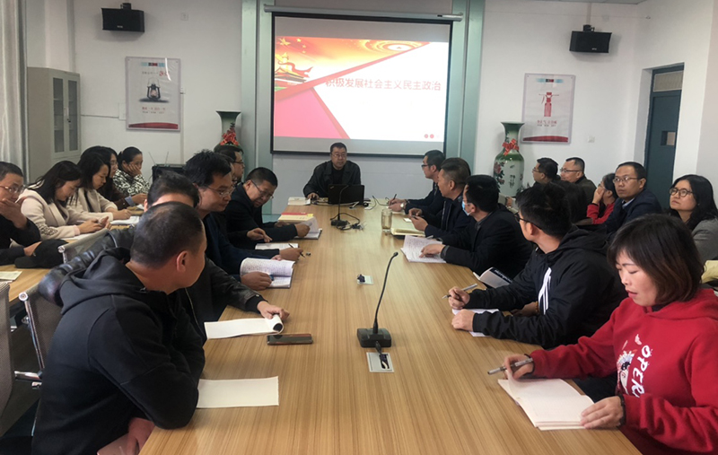 10月22日下午,武威職業(yè)學(xué)院馬克思主義學(xué)院副院長(zhǎng)、副教授胡靜峰應(yīng)邀來(lái)到電子信息工程系,宣講《習(xí)近平談治國(guó)理政》第三卷。電子信息工程系全體教師參加了宣講會(huì),系黨總支書(shū)記袁青年主持會(huì)議。