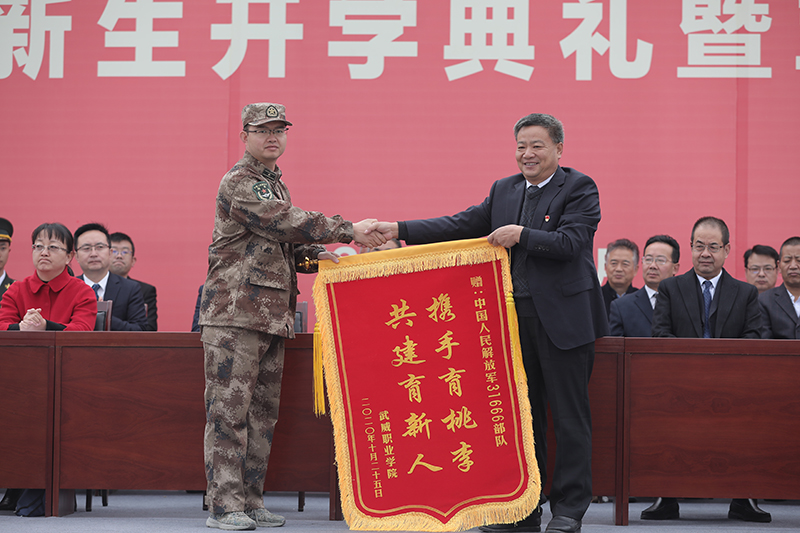 黨委書記、院長(zhǎng)趙明向承訓(xùn)部隊(duì)贈(zèng)送錦旗