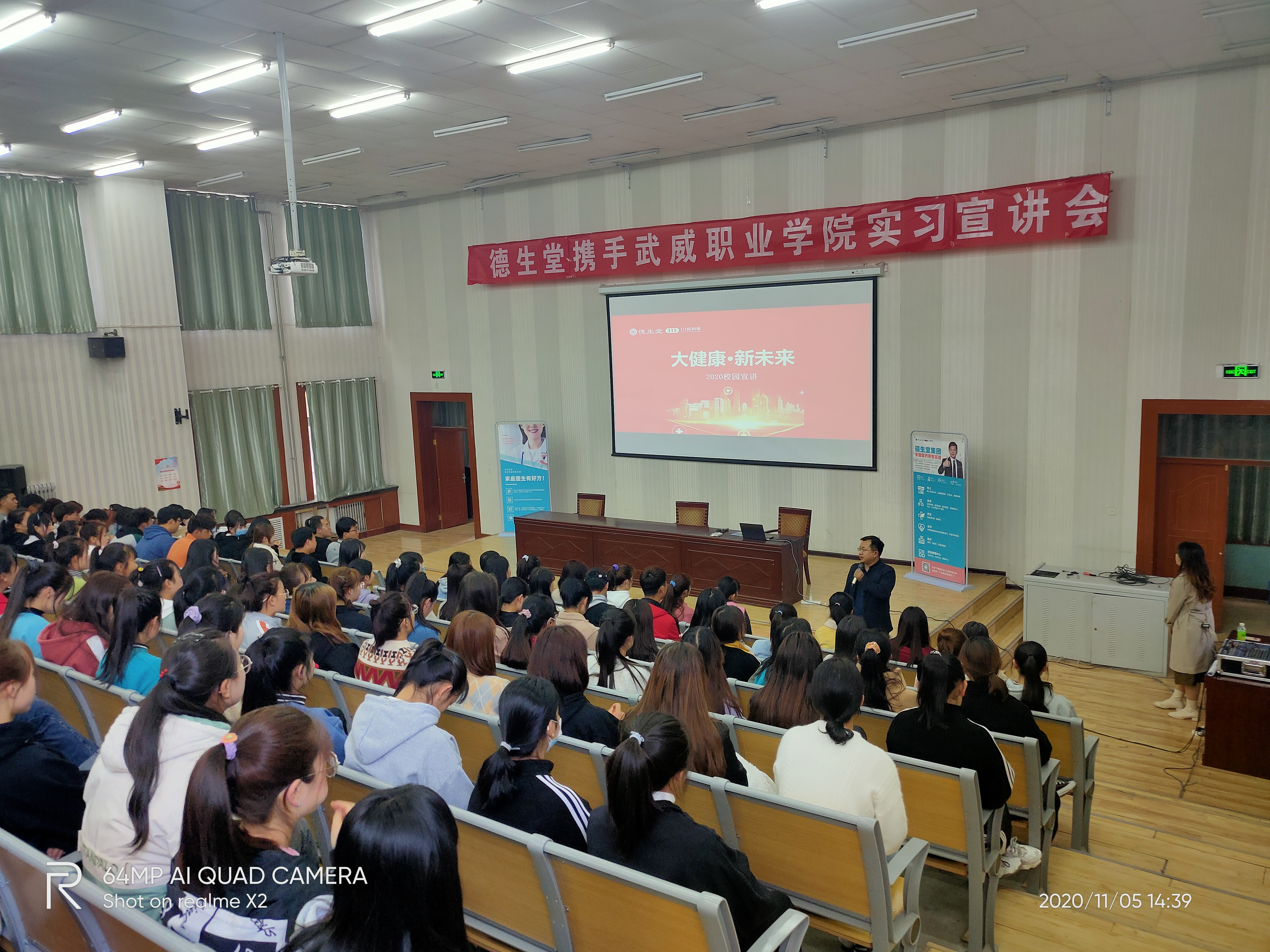 2020年11月5日,武威職業(yè)學(xué)院藥學(xué)系攜手德生堂在正德廳舉辦實(shí)習(xí)宣講會(huì)。藥學(xué)系黨總支書記、主任魏潤明、藥學(xué)系副主任楊建美、德生堂集團(tuán)武威區(qū)域經(jīng)理呂福英及2021屆172名畢業(yè)生參加宣講會(huì)。