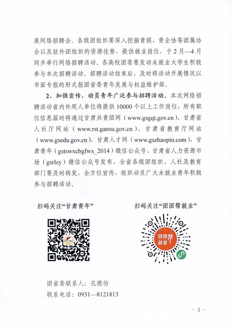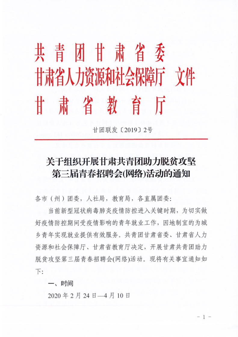 關(guān)于組織開(kāi)展甘肅共青團(tuán)助力脫貧攻堅(jiān)第三屆青春招聘會(huì)(網(wǎng)絡(luò))活動(dòng)的通知
