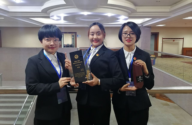 在上午進(jìn)行的初賽中,非法學(xué)組共有13個(gè)學(xué)校參加,前八名進(jìn)入決賽。我院三位選手在與兄弟學(xué)校的激烈角逐下,脫穎而出,以小組賽第二名、初賽第四名的成績(jī)輕松進(jìn)入決賽。下午的決賽中,面對(duì)更強(qiáng)大的對(duì)手,面對(duì)評(píng)委老師,三位選手始終面帶笑容、自信滿滿、密切配合,憑自己的努力、實(shí)力,發(fā)揮出她們的最好水平,個(gè)人答題毫無破綻、搶答過程頻頻得手、個(gè)人論述聲情并茂,獲得了評(píng)委的高度贊賞。經(jīng)過激烈的比拼,我院代表隊(duì)一路披荊斬棘,過關(guān)斬將,最終獲得非法學(xué)組金獎(jiǎng)(第一名),學(xué)院獲優(yōu)秀組織獎(jiǎng),羅茜獲得個(gè)人優(yōu)秀選手獎(jiǎng)。